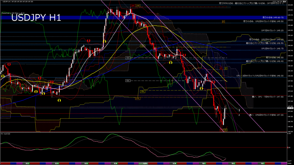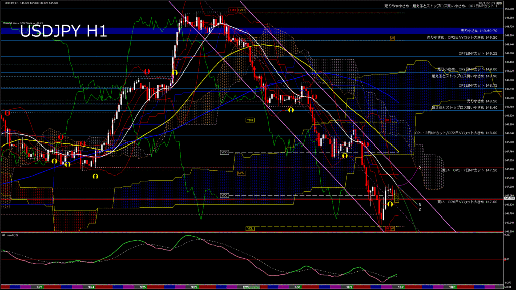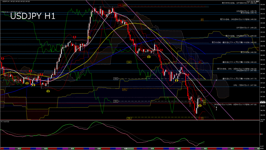 情報 USDJPY-H4移動平均線と現在値(RSI)-2025.10.2 10:00:05