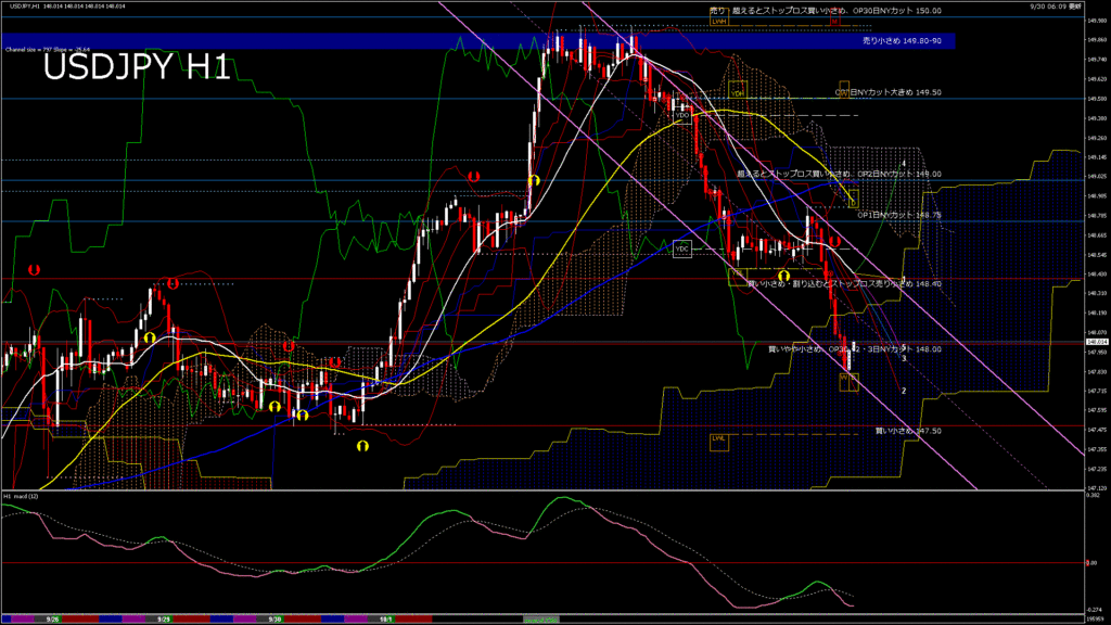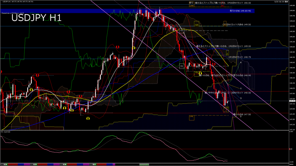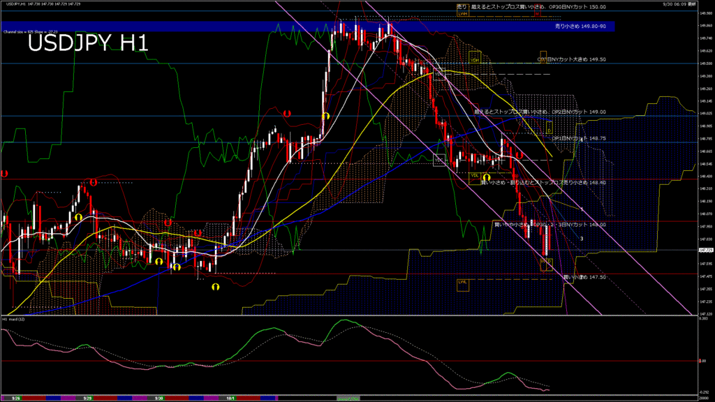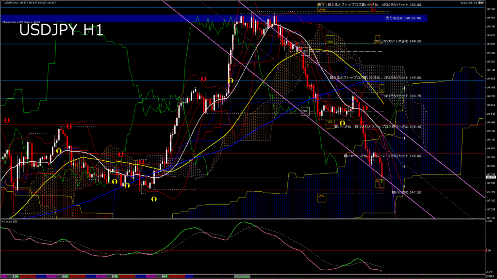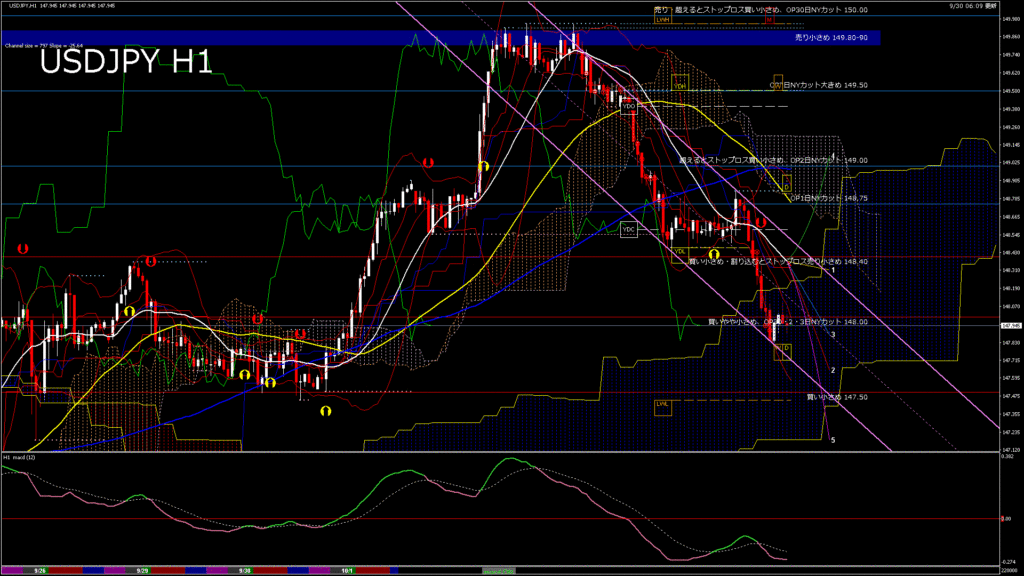 情報 USDJPY-H1移動平均線と現在値(RSI)-2025.10.1 5:00:07