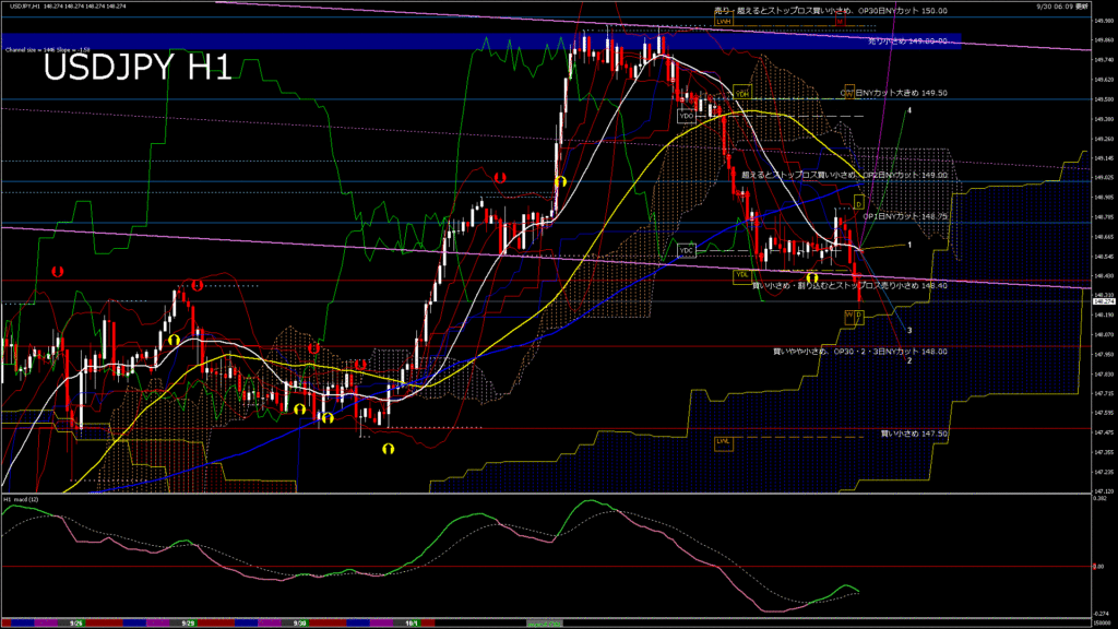 情報 USDJPY-H1移動平均線と現在値(RSI)-2025.9.30 20:00:00