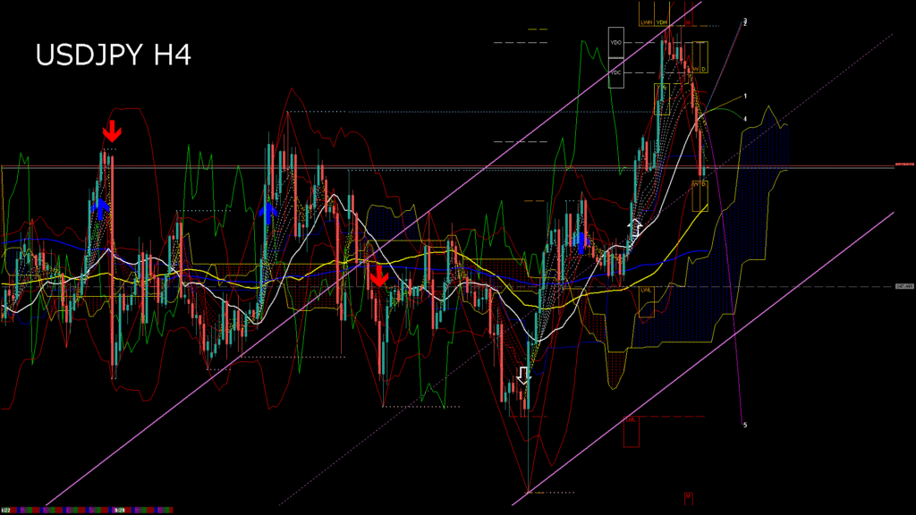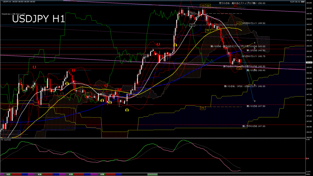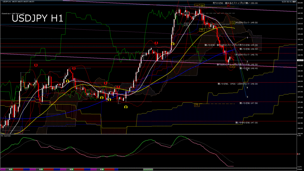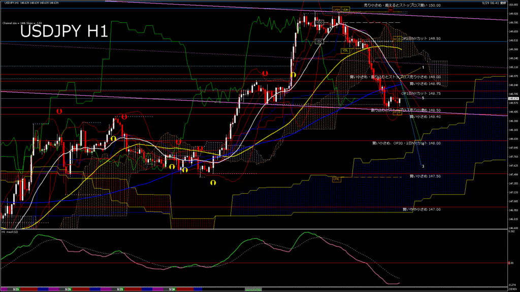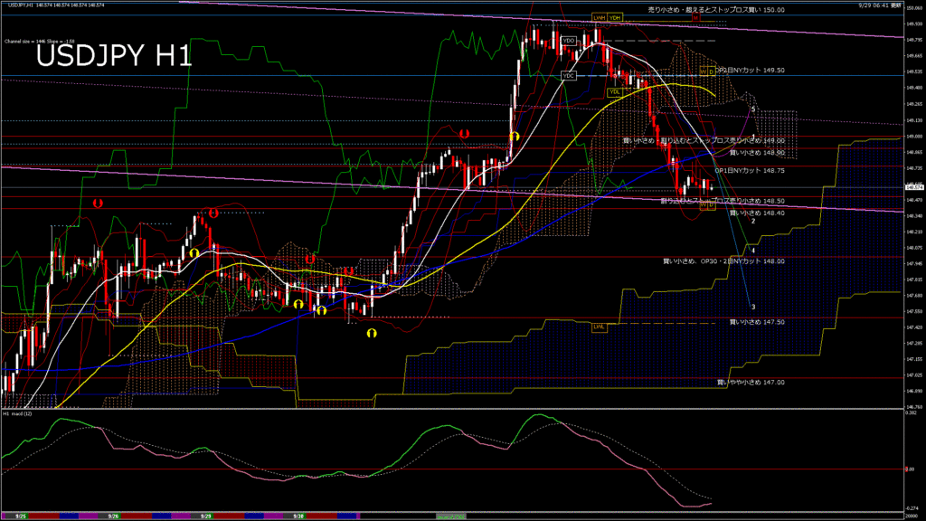 情報 USDJPY-H1移動平均線と現在値(RSI)-2025.9.30 6:00:38