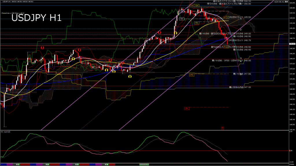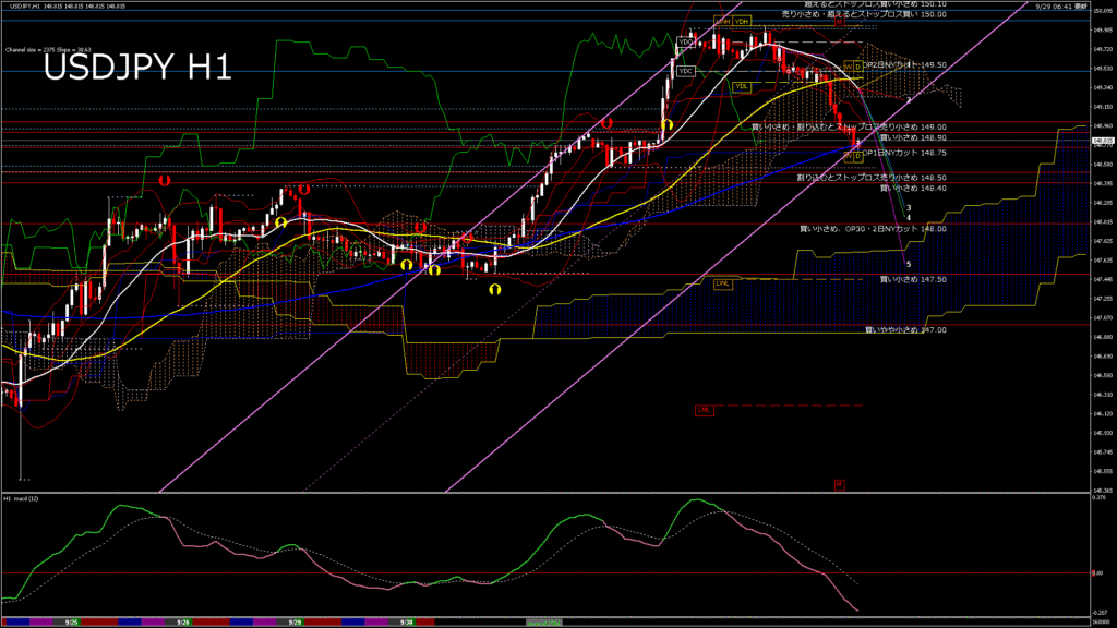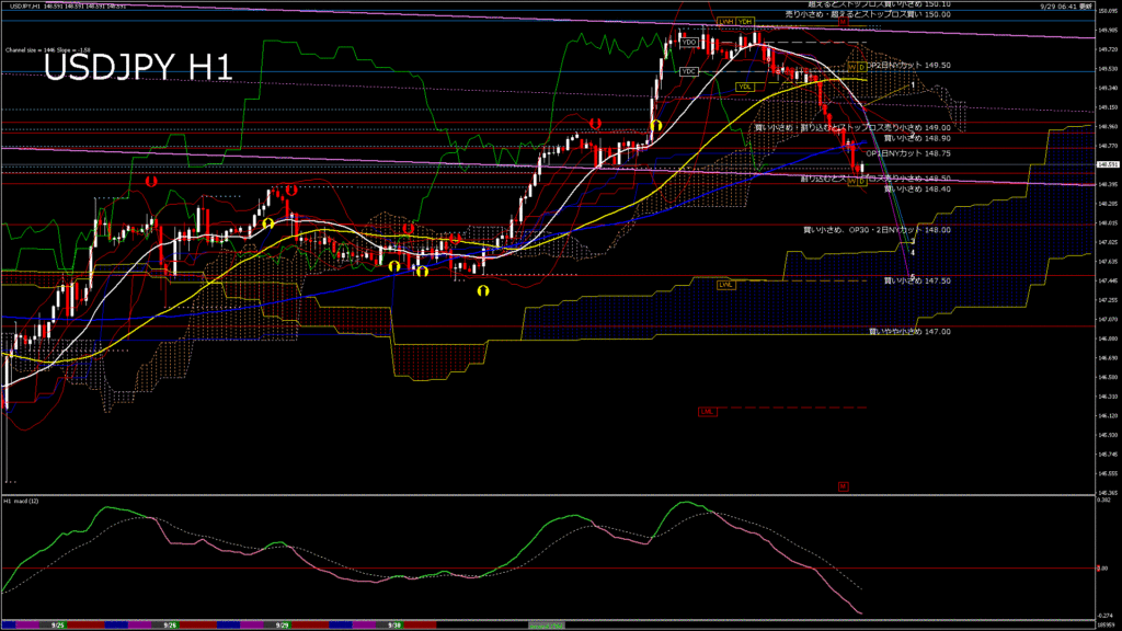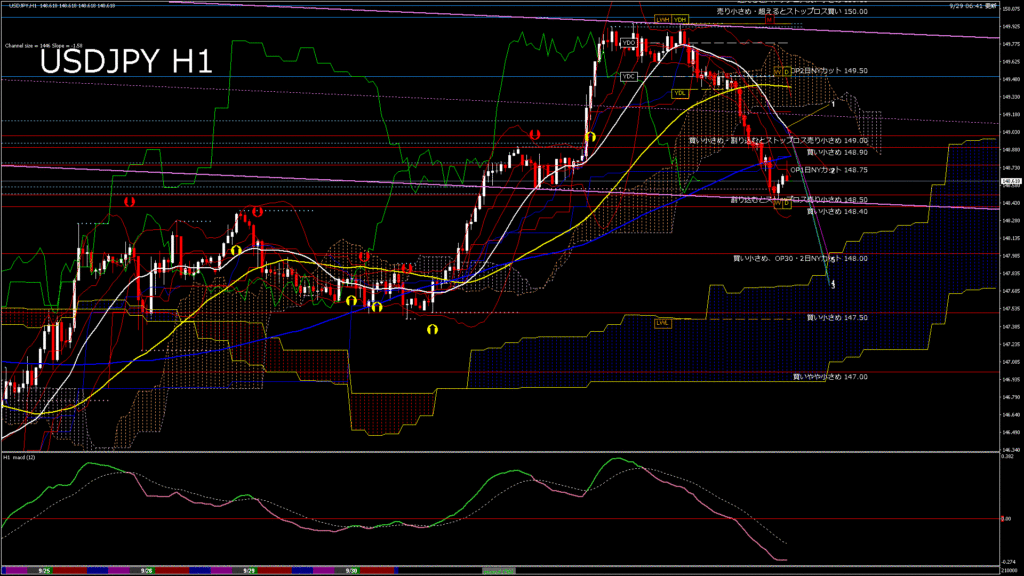 情報 USDJPY-H1移動平均線と現在値(RSI)-2025.9.30 0:00:00