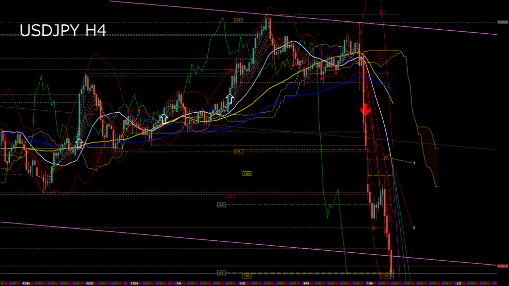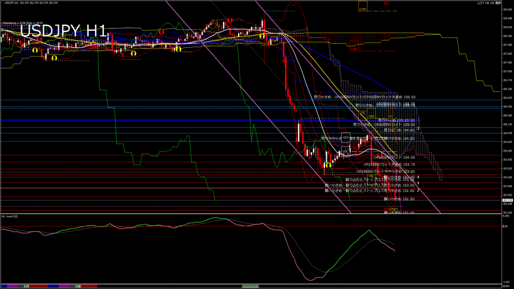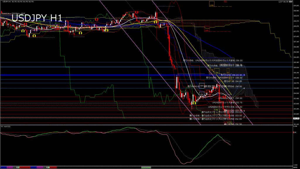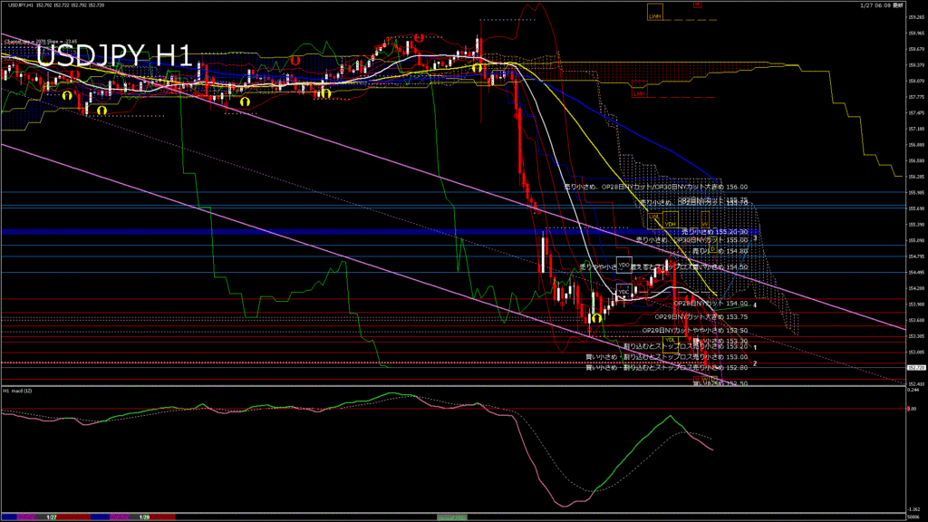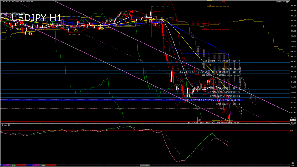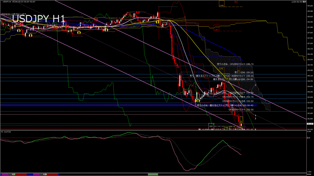 情報 USDJPY-H1移動平均線と現在値(RSI)-2026.1.28 12:00:00
