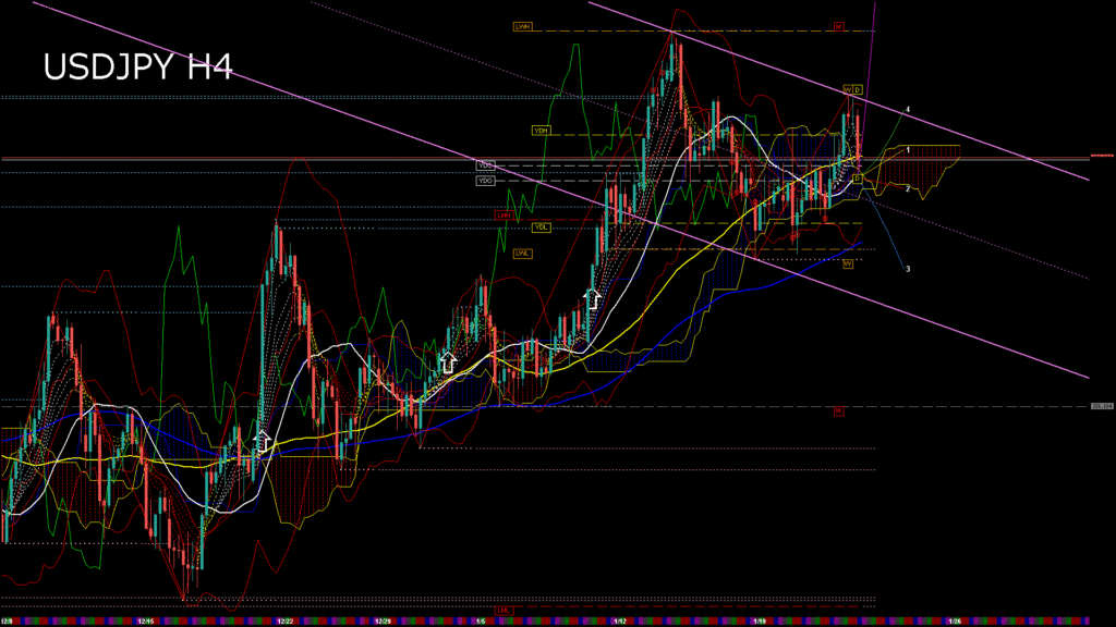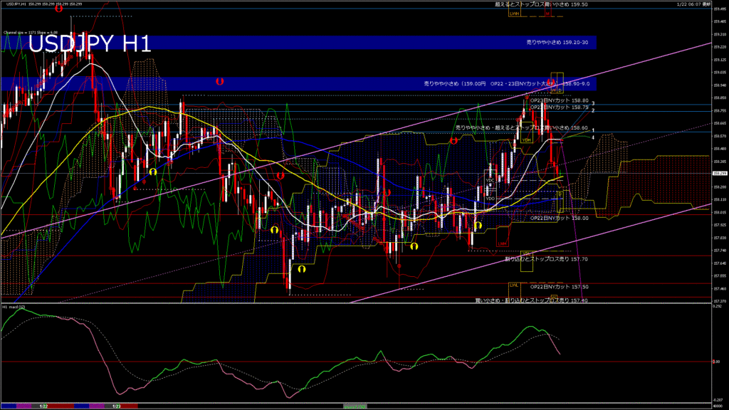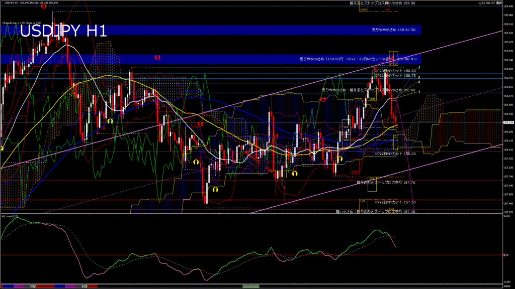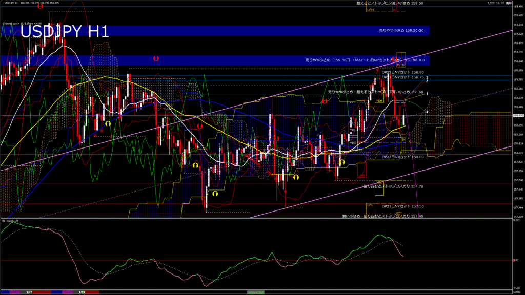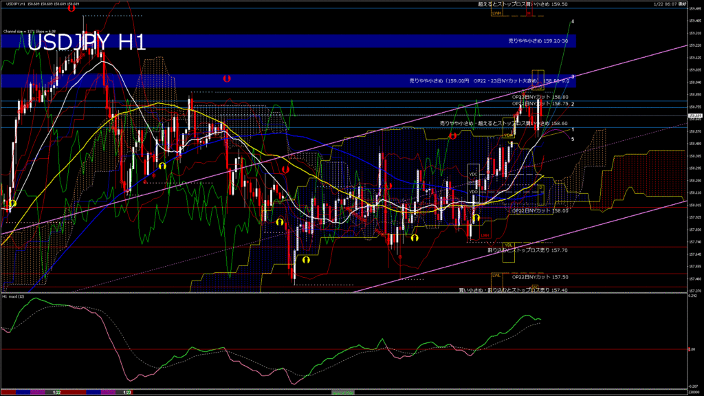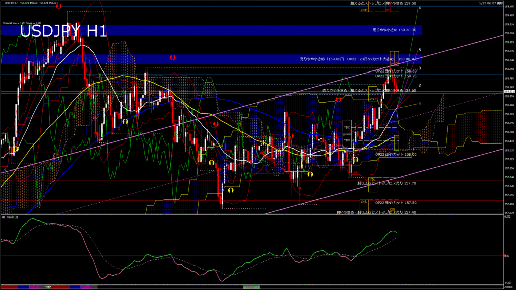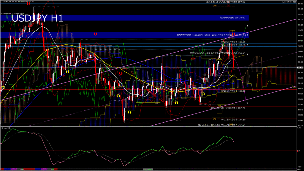 情報 USDJPY-H1移動平均線と現在値(RSI)-2026.1.23 5:00:00
