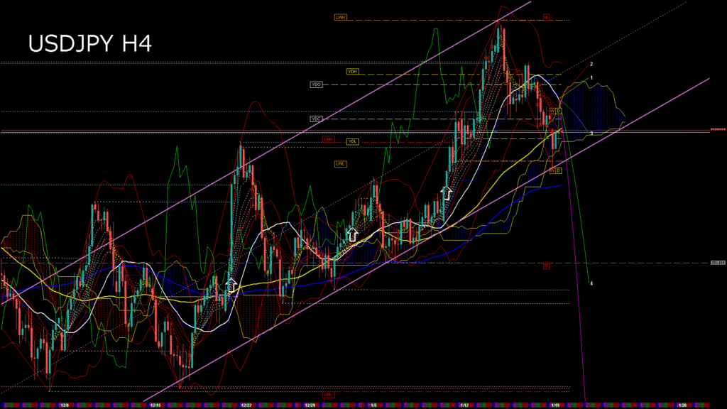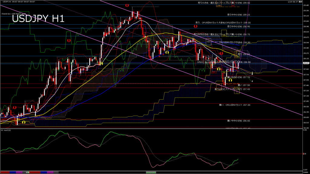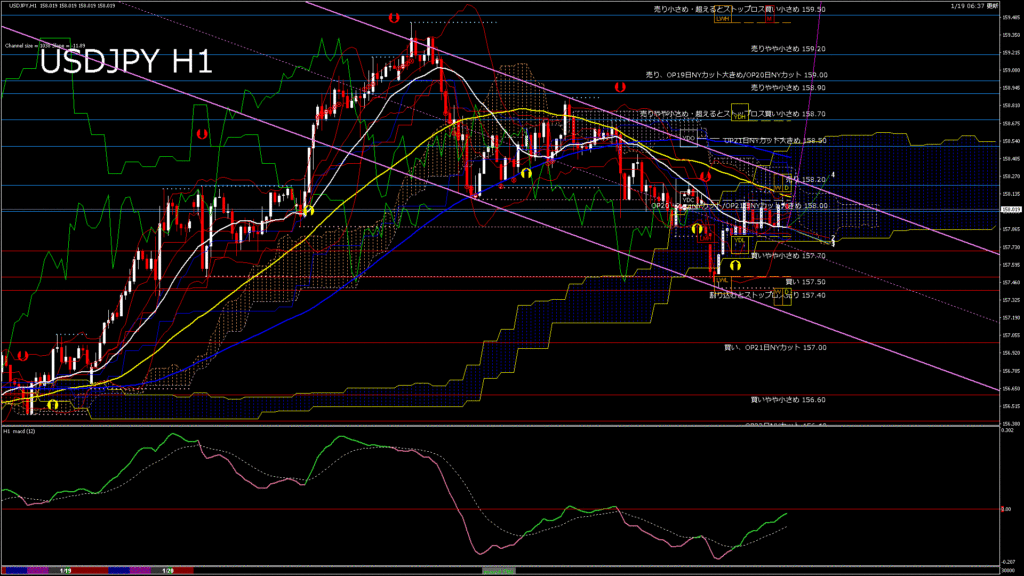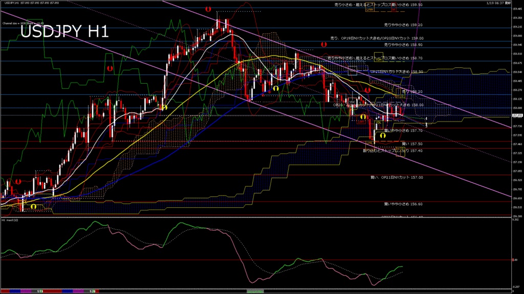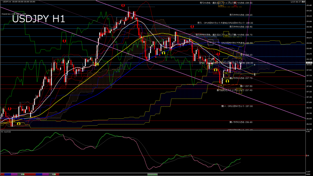 情報 USDJPY-H1移動平均線と現在値(RSI)-2026.1.20 3:00:00
