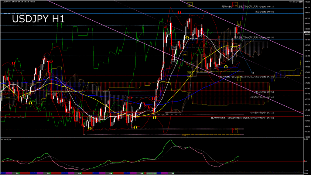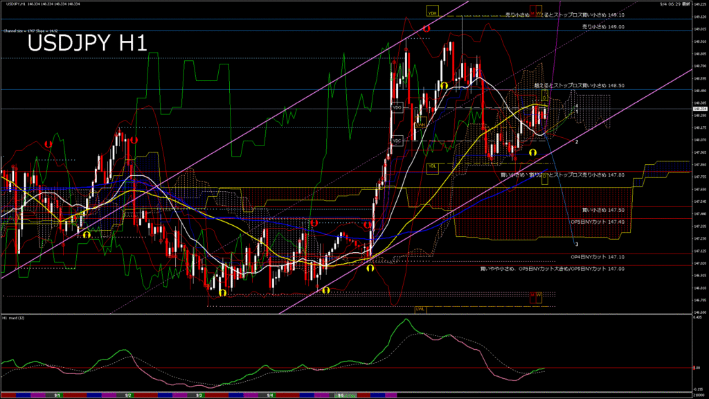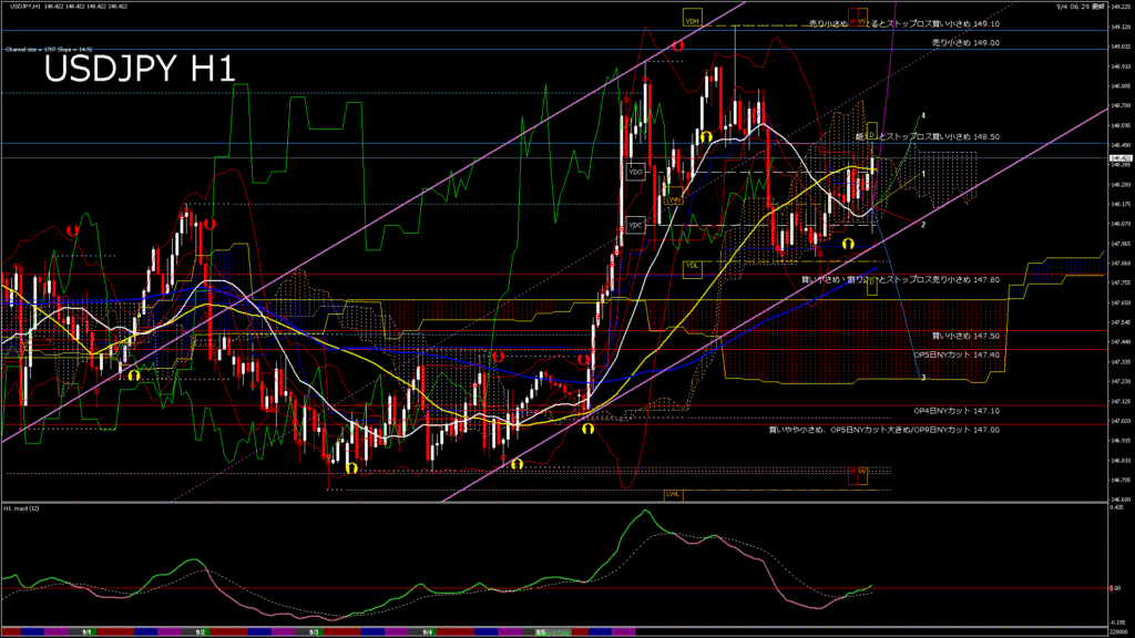 情報 USDJPY-H1移動平均線と現在値(RSI)-2025.9.5 4:00:00
