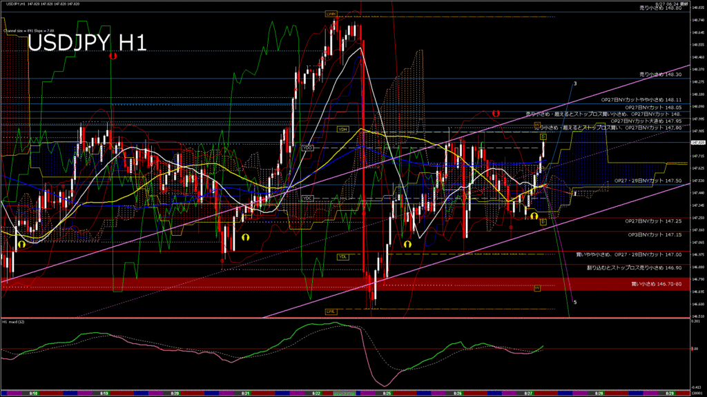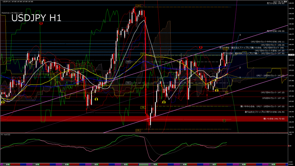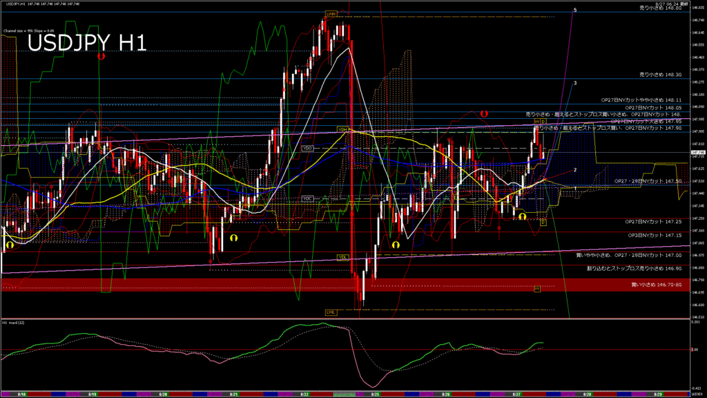 情報 USDJPY-H1移動平均線と現在値(RSI)-2025.8.27 20:00:00