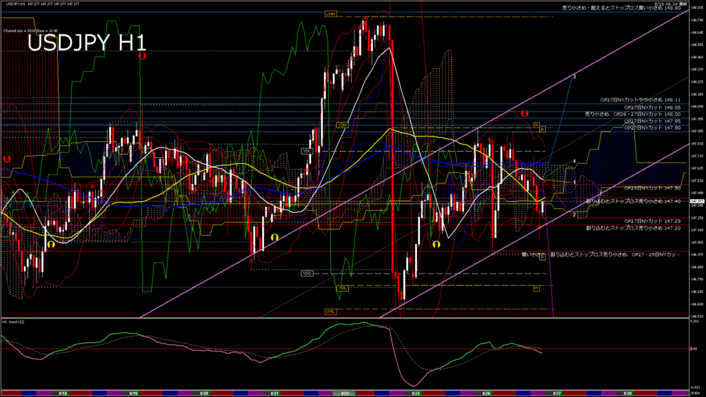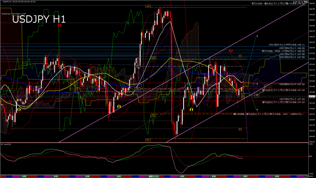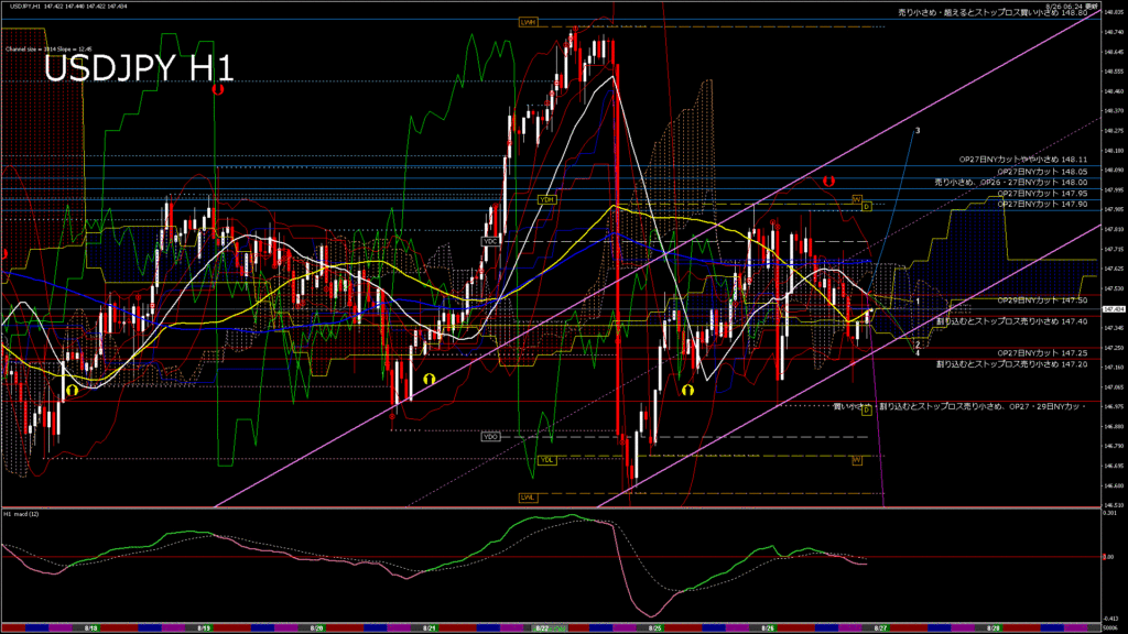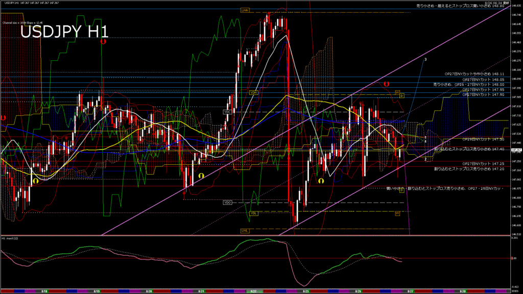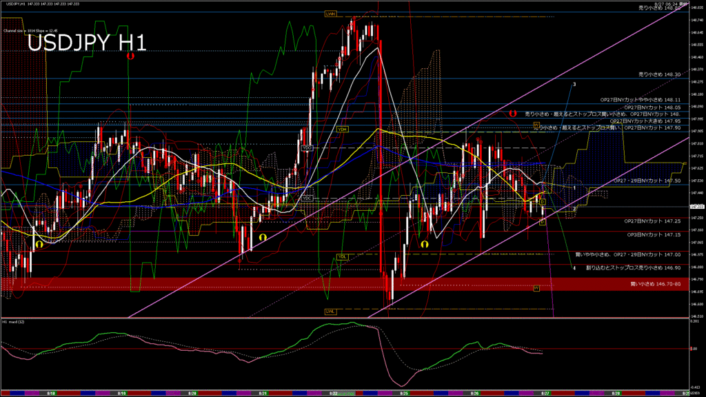 情報 USDJPY-H1移動平均線と現在値(RSI)-2025.8.27 10:00:00