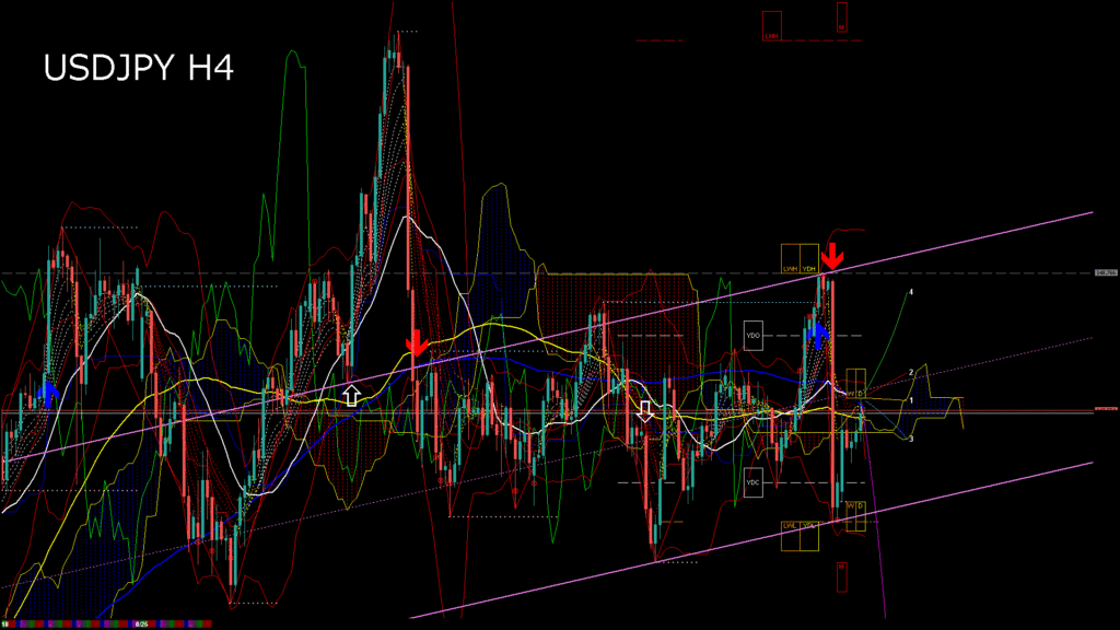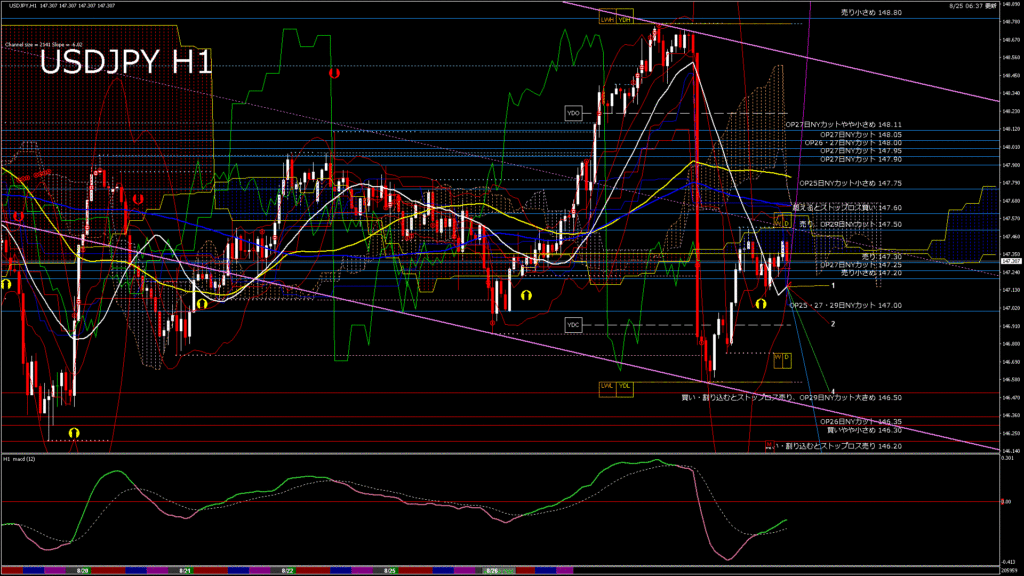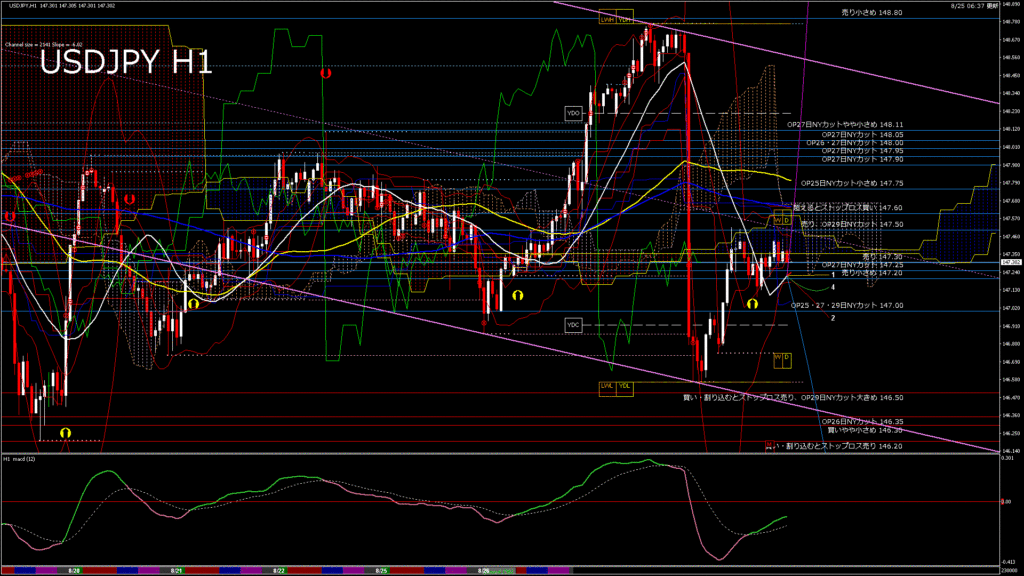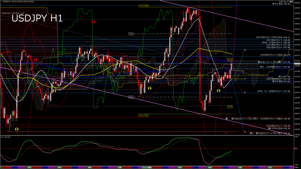 情報 USDJPY-H4移動平均線と現在値(RSI)-2025.8.26 2:00:00