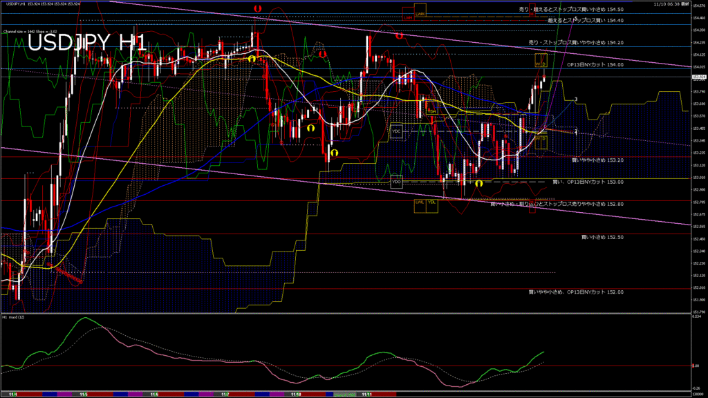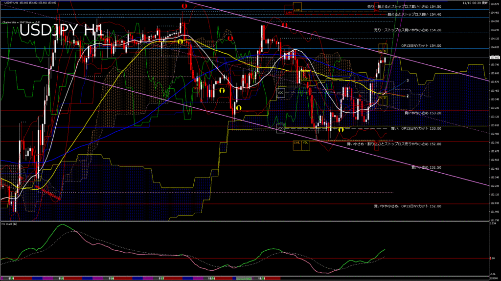 情報 USDJPY-H1移動平均線と現在値(RSI)-2025.11.10 13:00:00