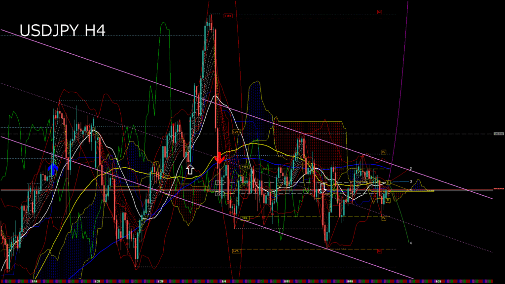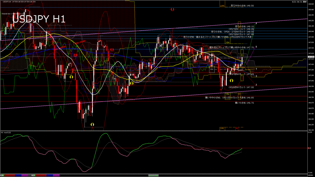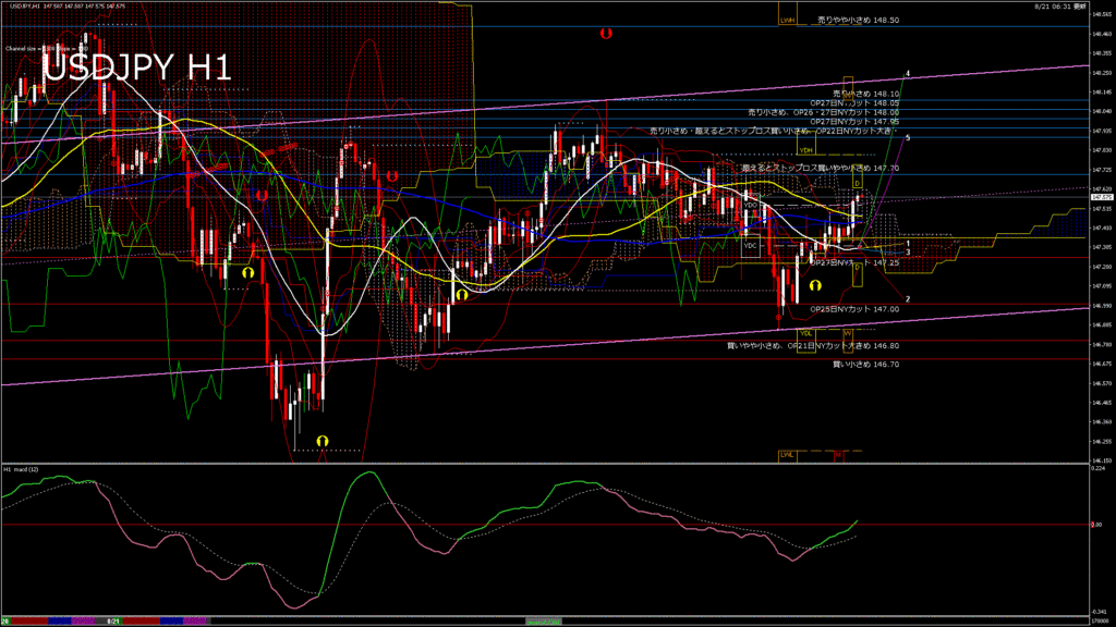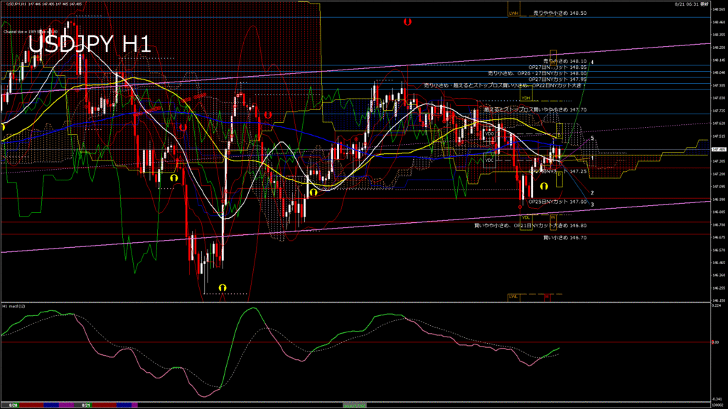 情報 USDJPY-H1移動平均線と現在値(RSI)-2025.8.21 17:00:00