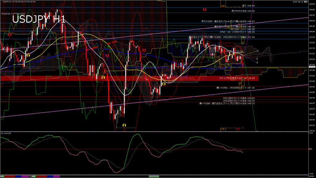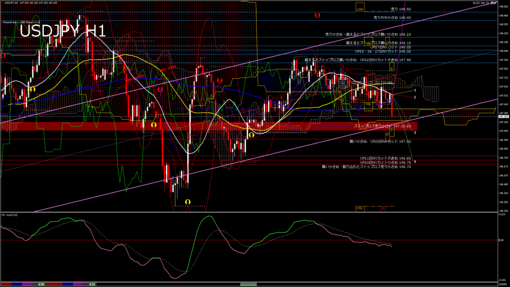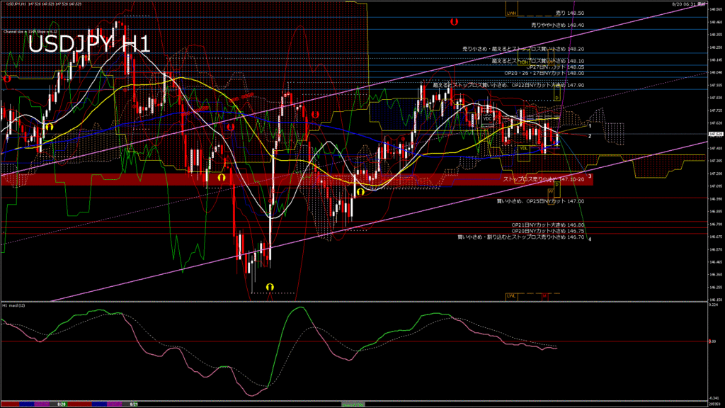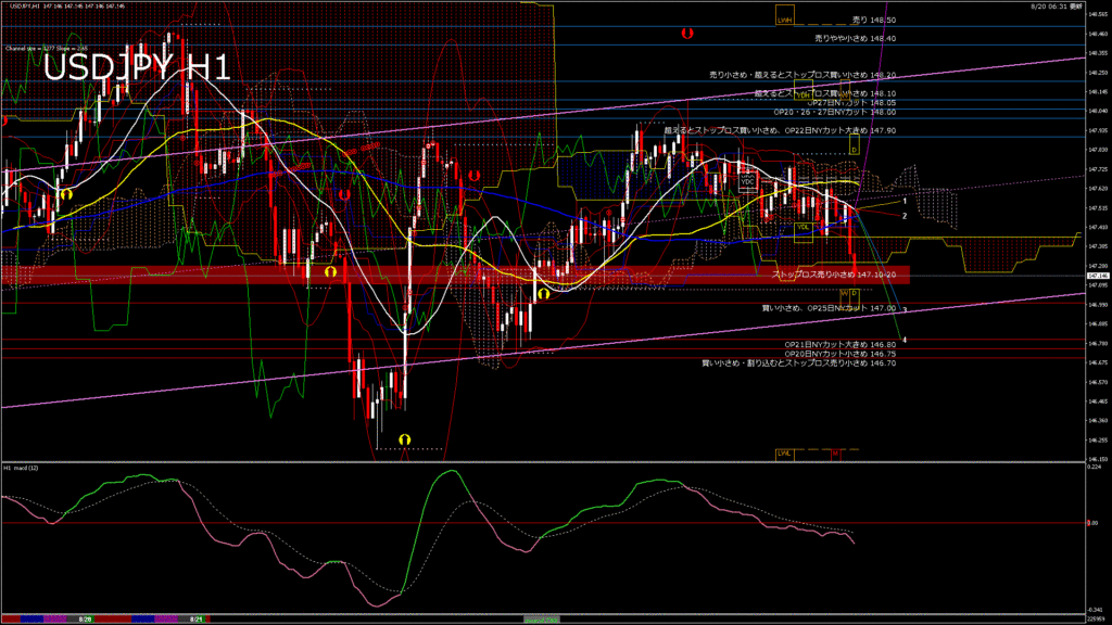 情報 USDJPY-H1移動平均線と現在値(RSI)-2025.8.21 0:00:00