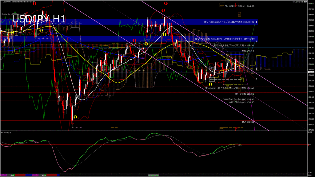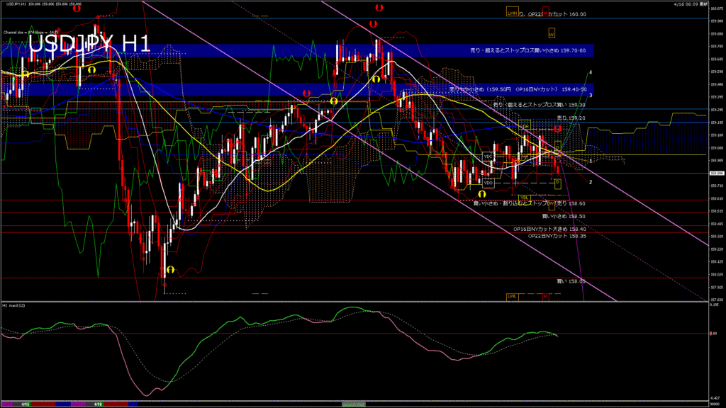 情報 USDJPY-H4移動平均線と現在値(RSI)-2026.4.16 10:00:08
