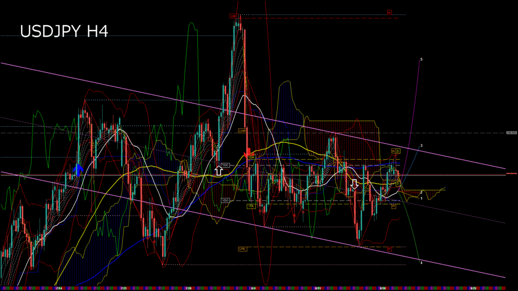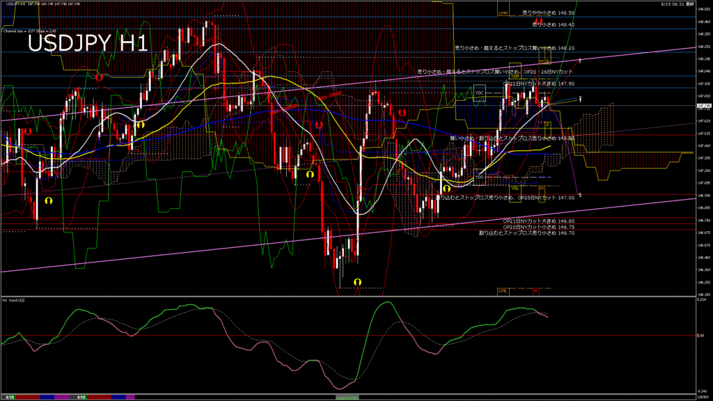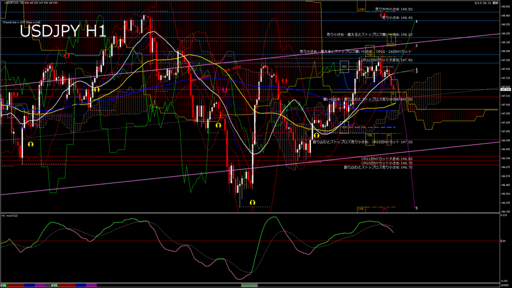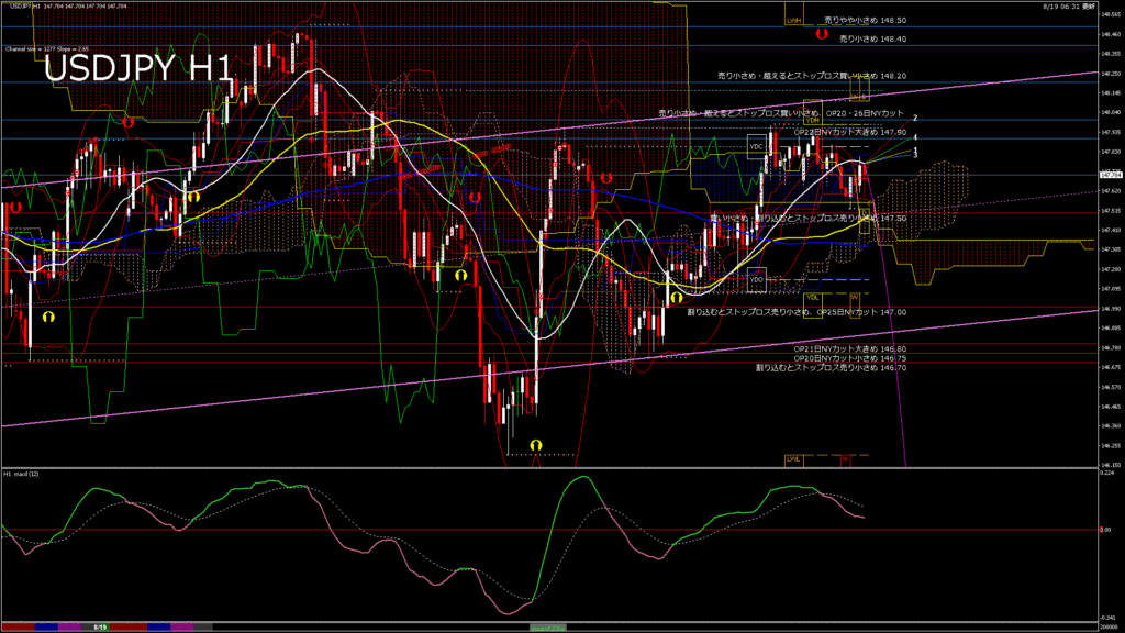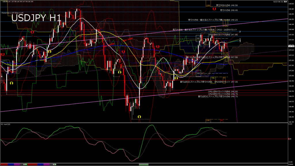 情報 USDJPY-H4移動平均線と現在値(RSI)-2025.8.19 22:00:05