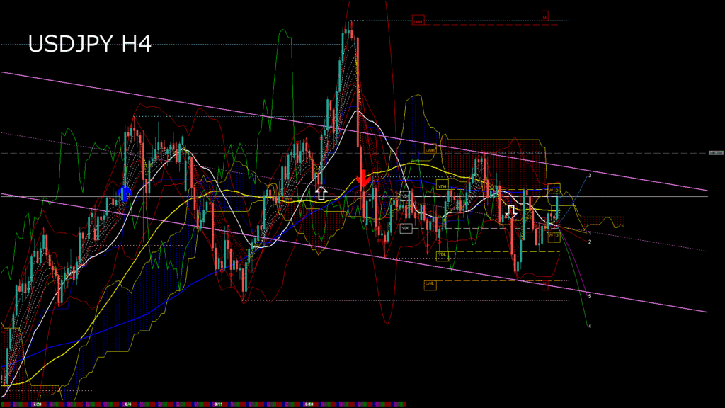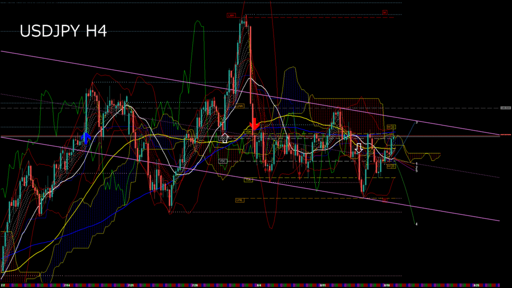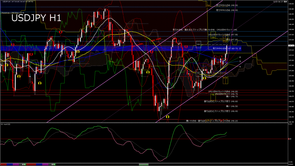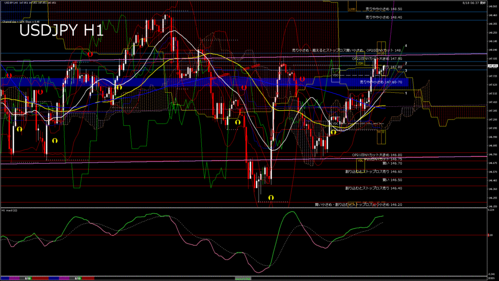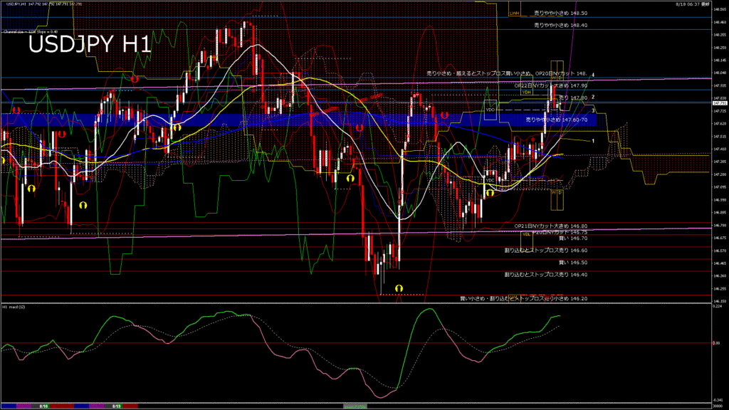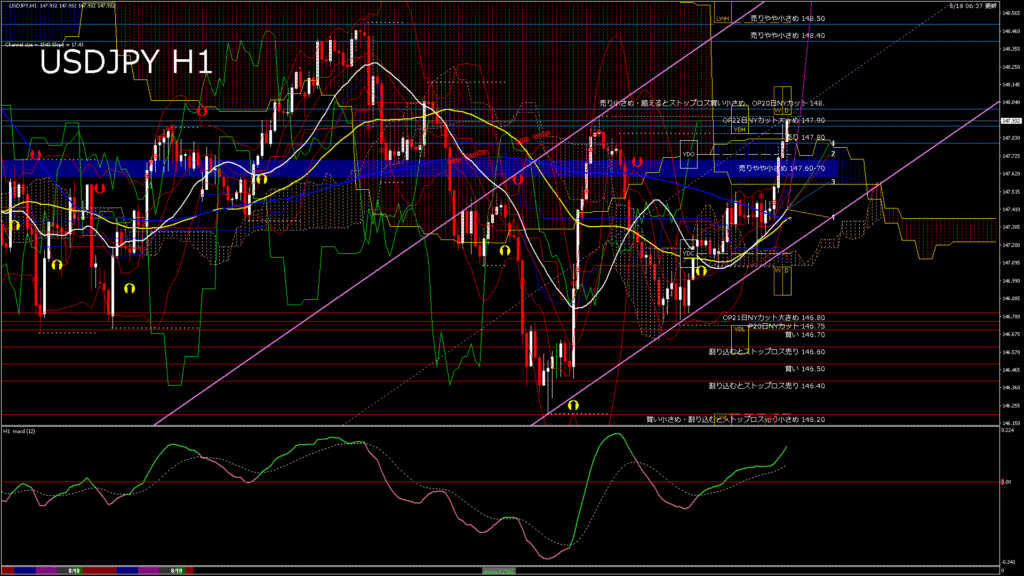 情報 USDJPY-本日の経済指標と日足移動平均線(RSI)-2025.8.19 6:00:48