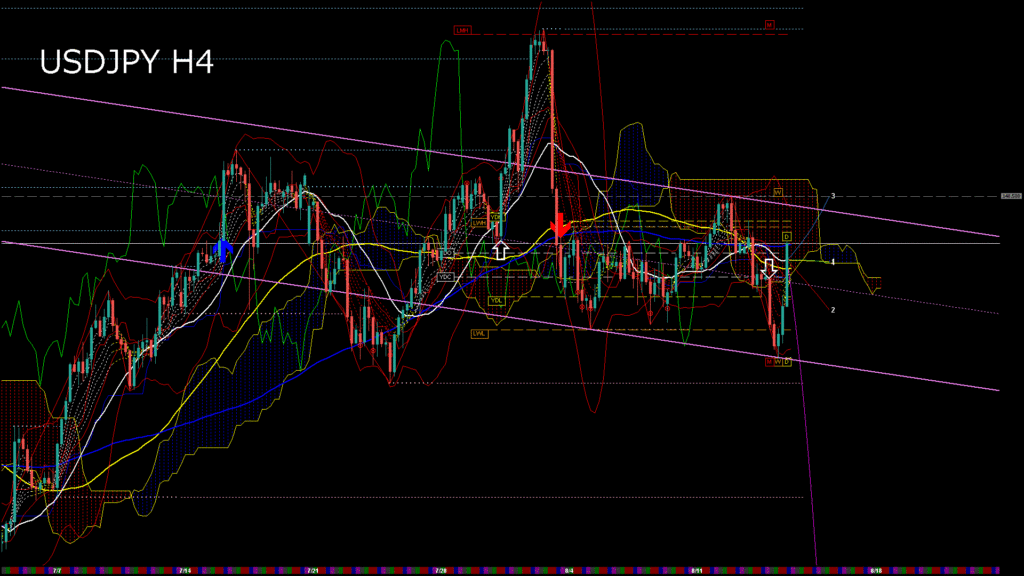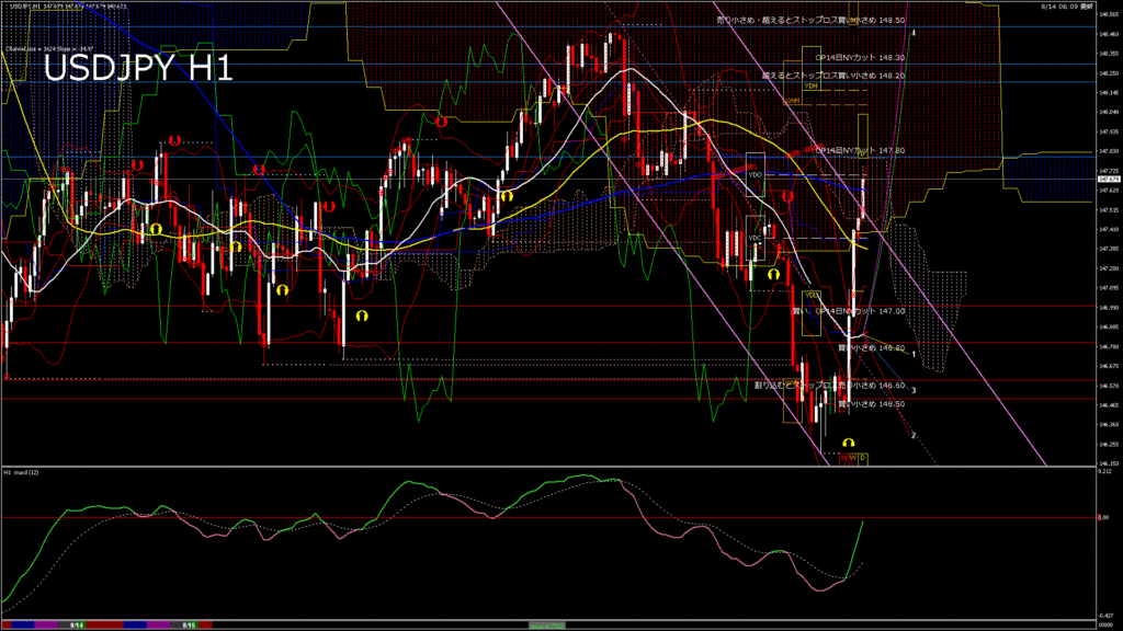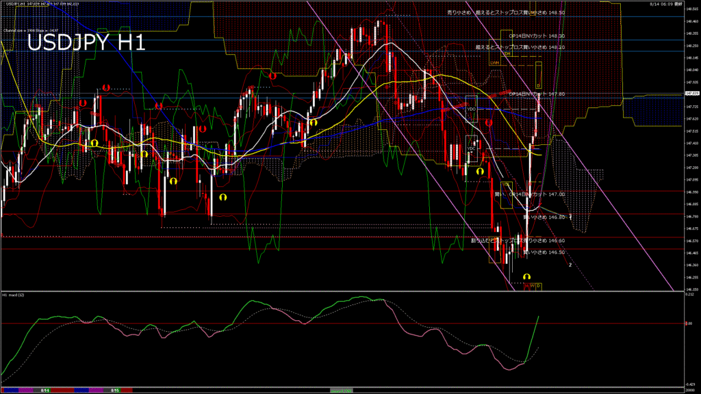 情報 USDJPY-H1移動平均線と現在値(RSI)-2025.8.15 8:00:00