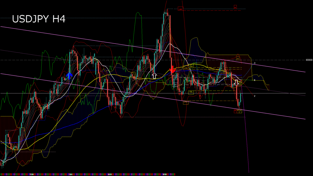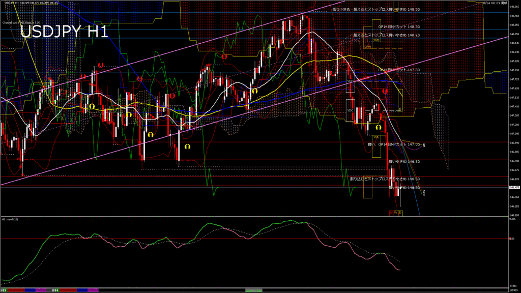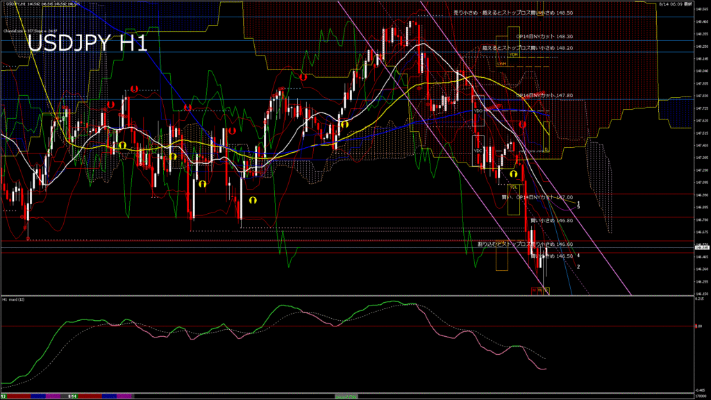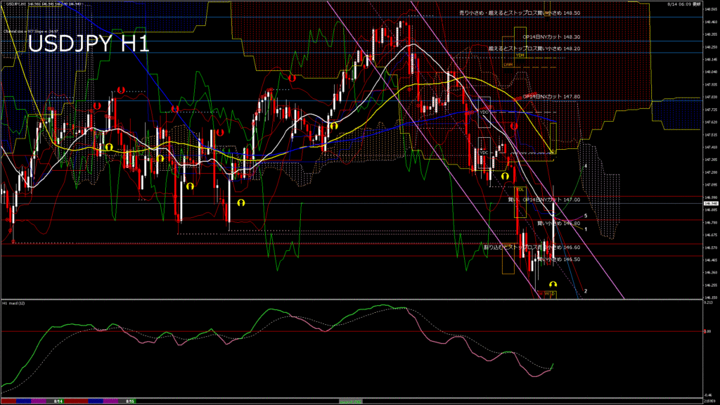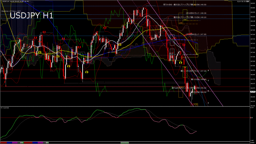 情報 USDJPY-H1移動平均線と現在値(RSI)-2025.8.15 0:00:00