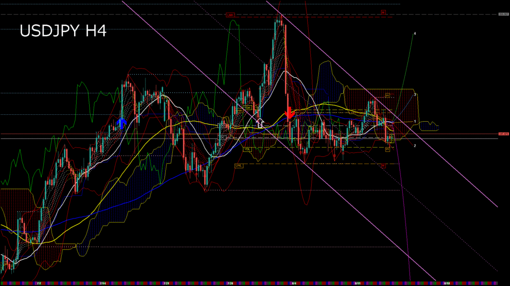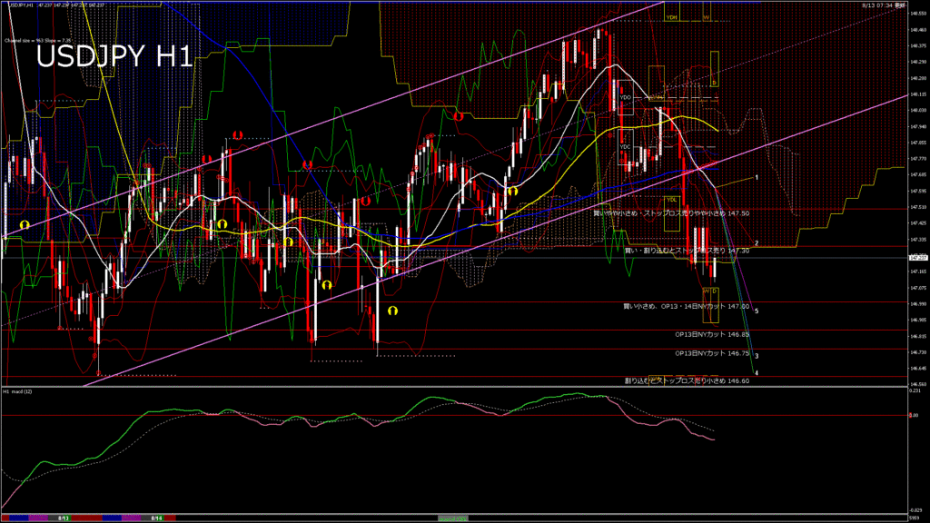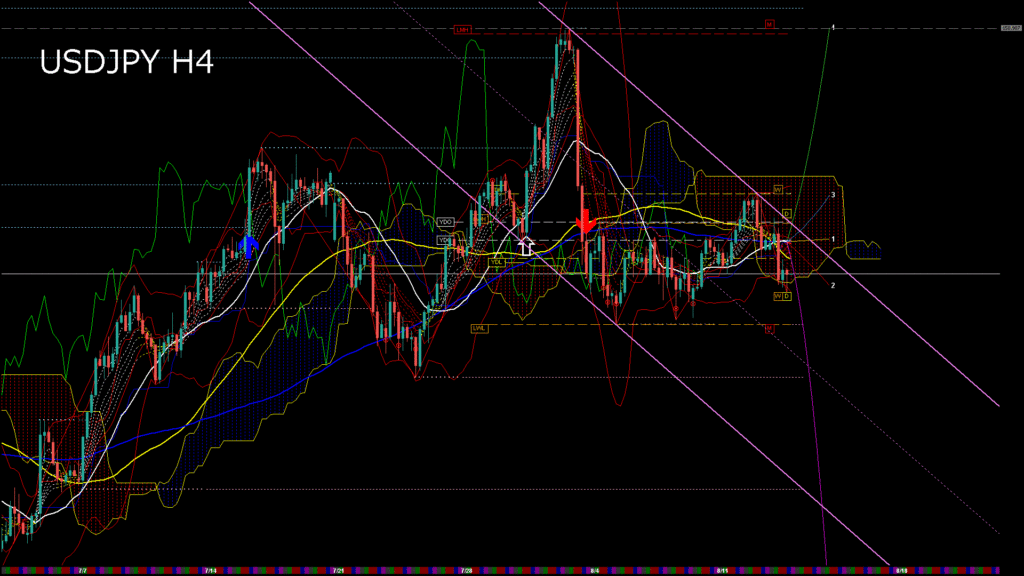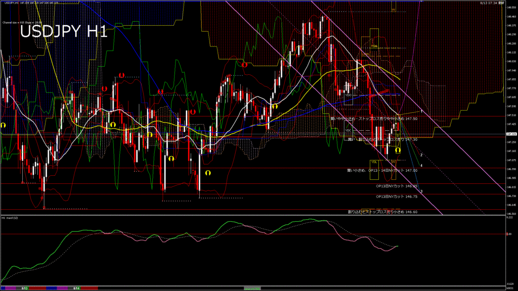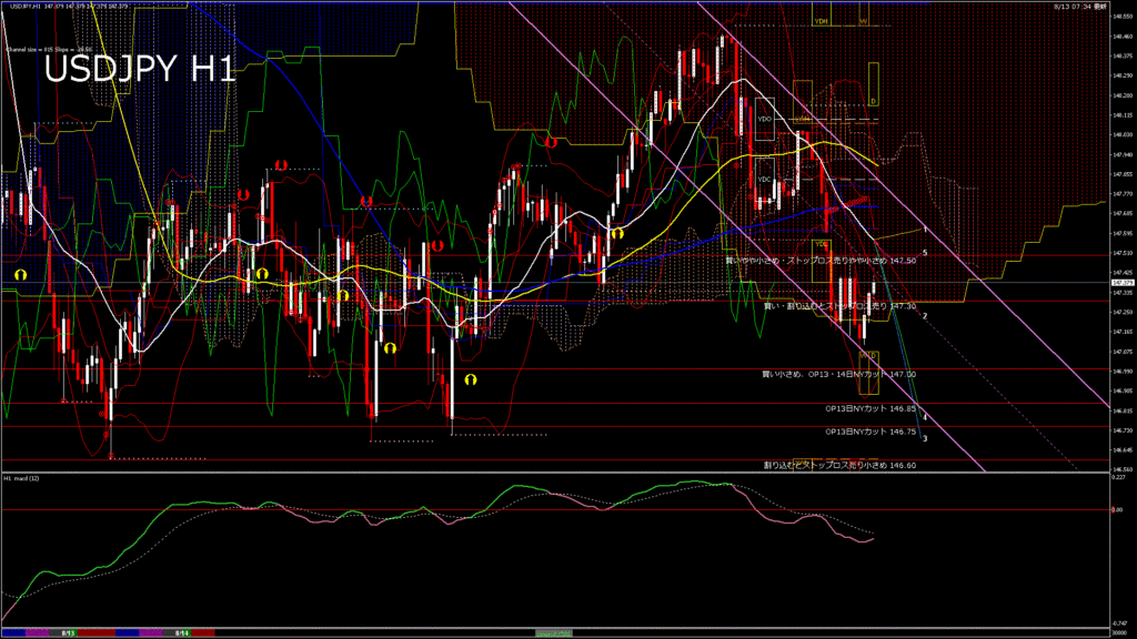 情報 USDJPY-H1移動平均線と現在値(RSI)-2025.8.14 7:00:00