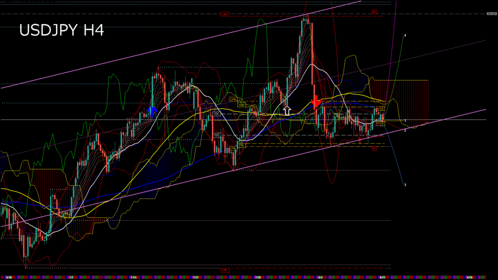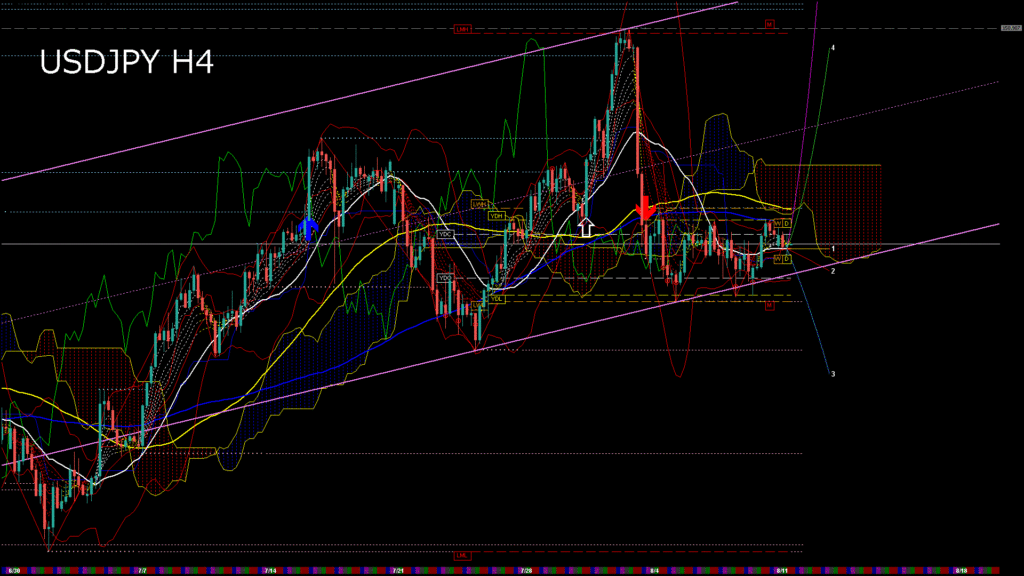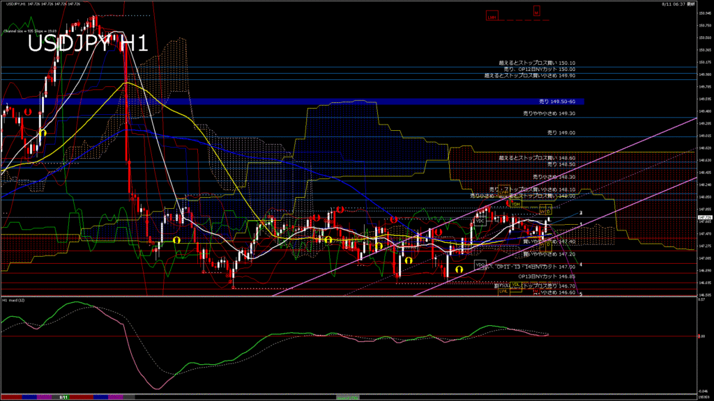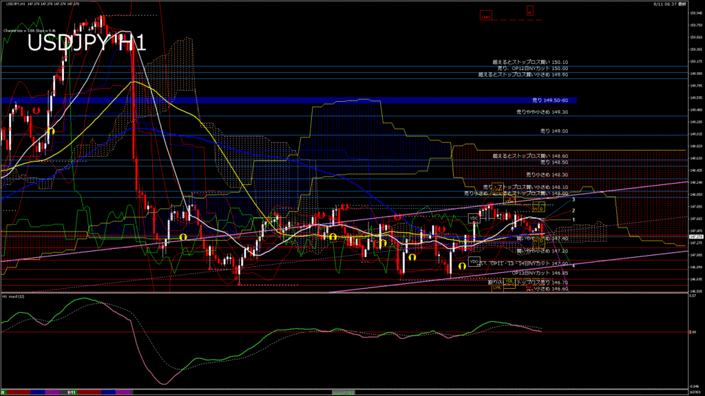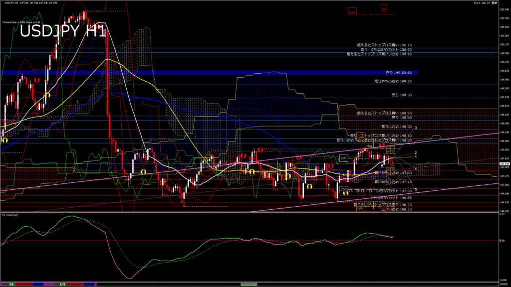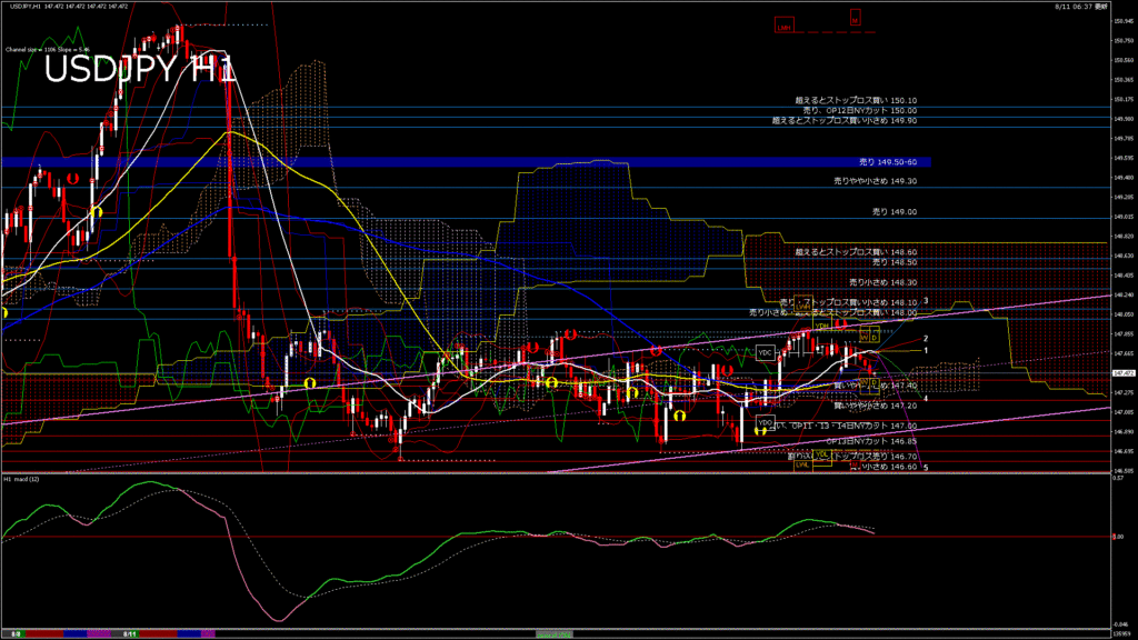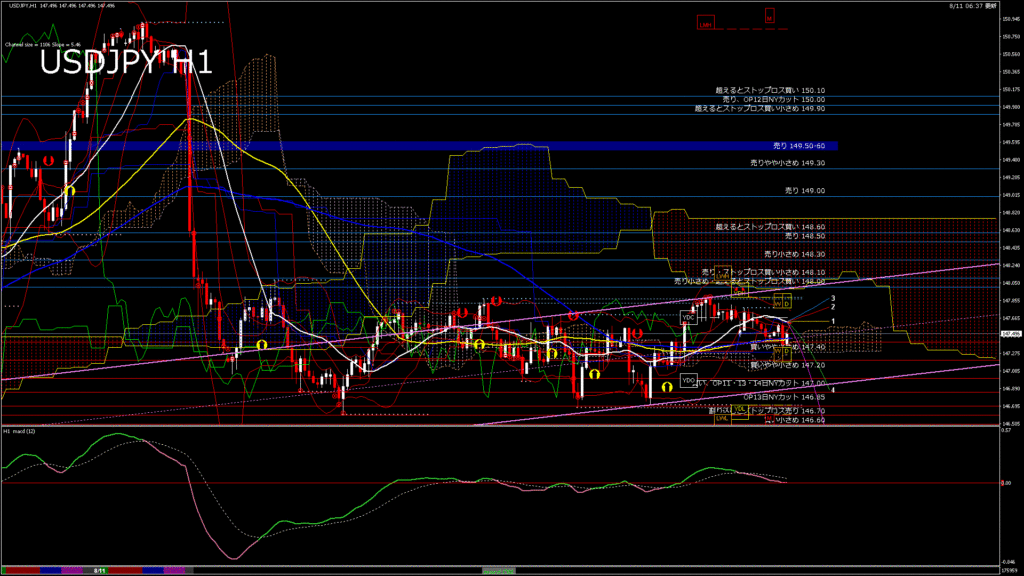情報 USDJPY-H1移動平均線と現在値(RSI)-2025.8.11 20:00:00