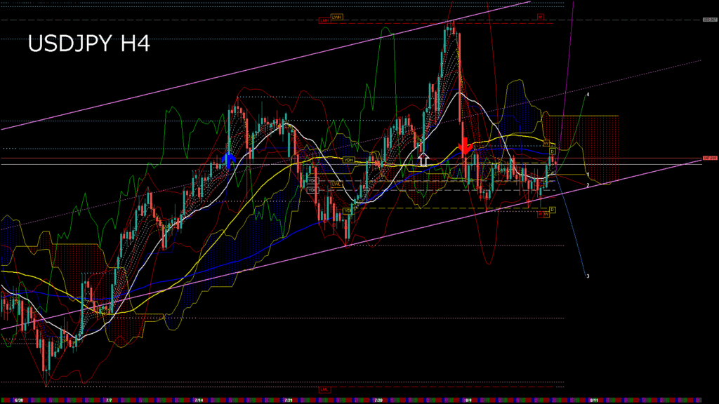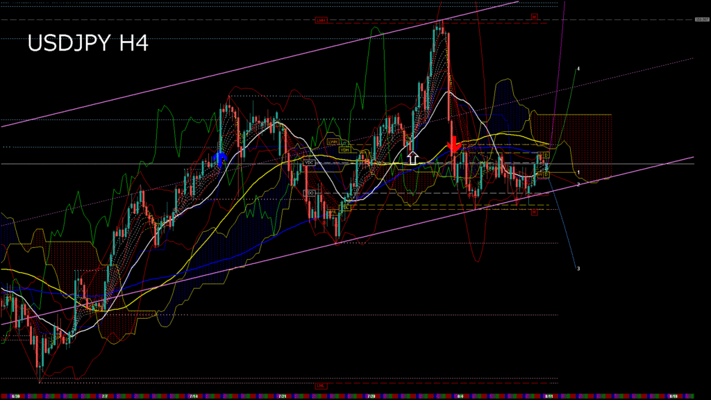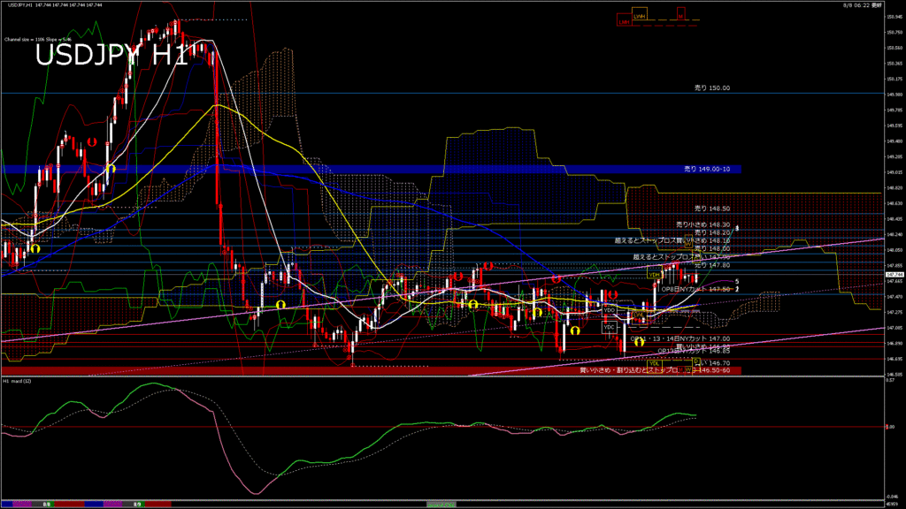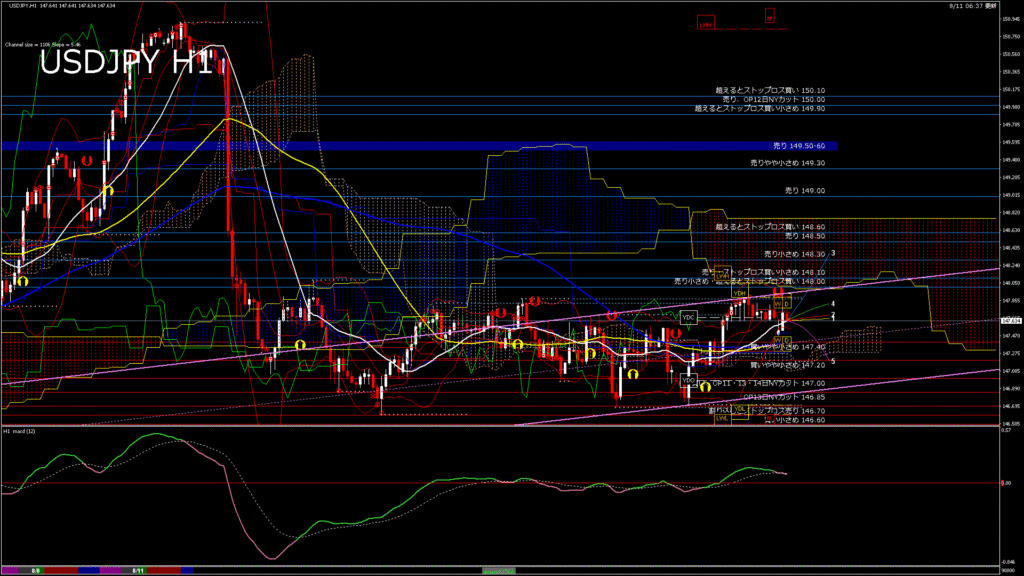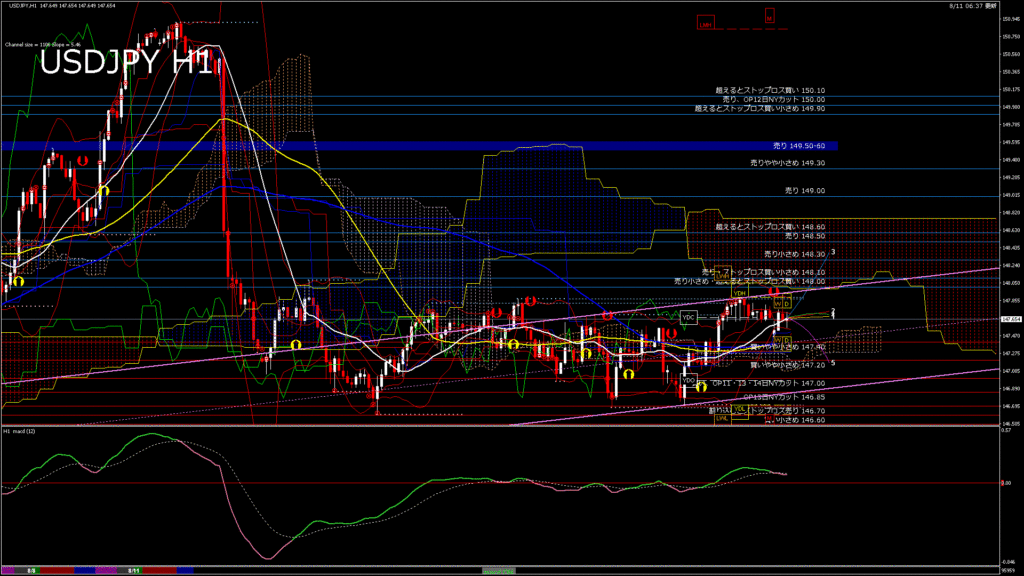 情報 USDJPY-H1移動平均線と現在値(RSI)-2025.8.11 11:00:00