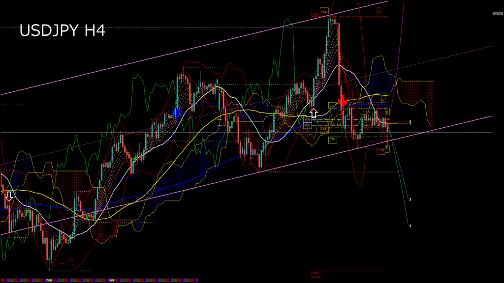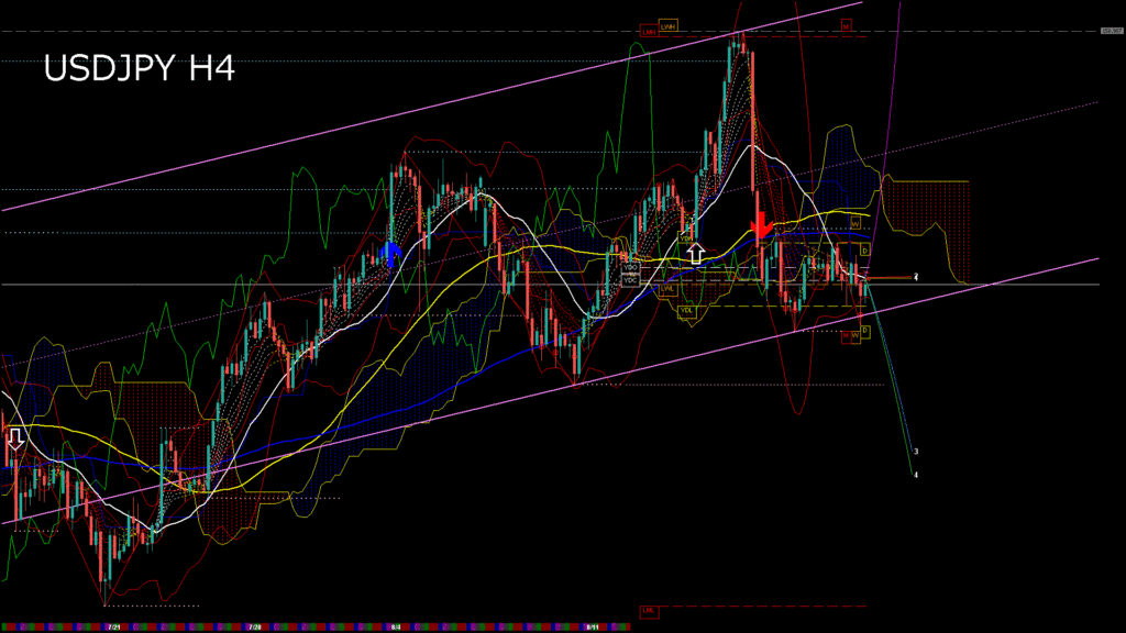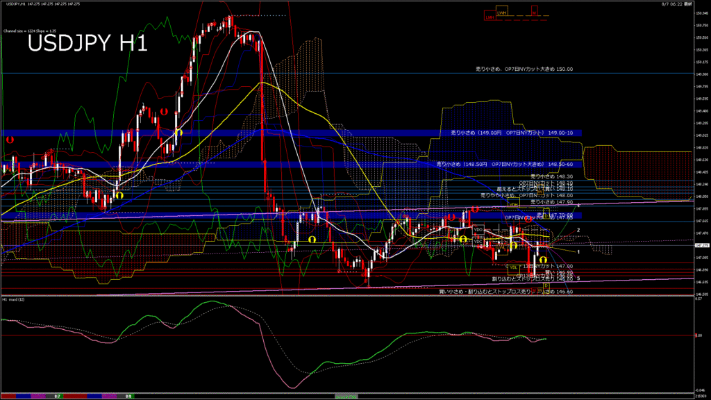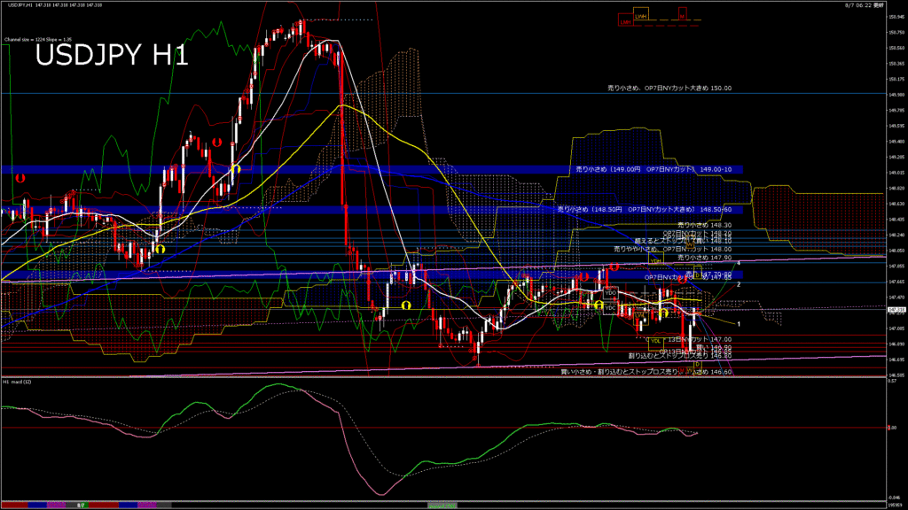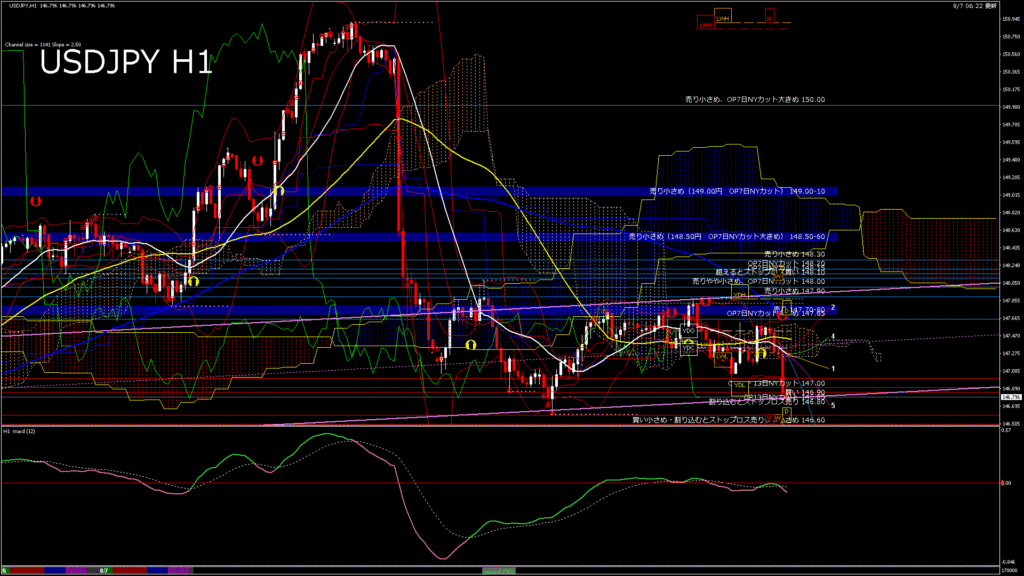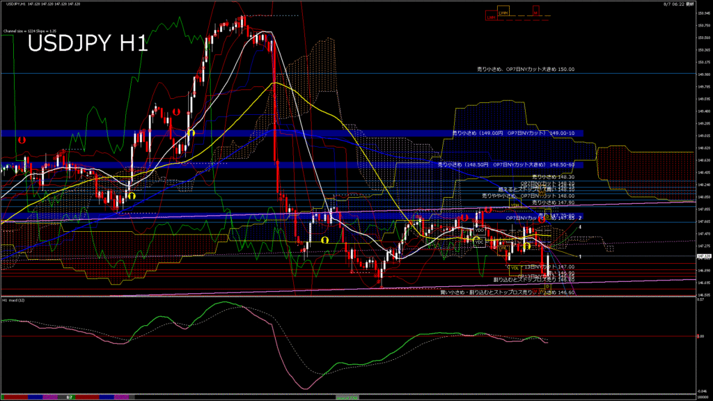 情報 USDJPY-H1移動平均線と現在値(RSI)-2025.8.7 23:00:00