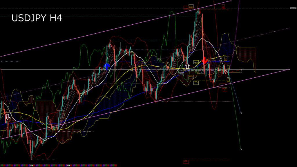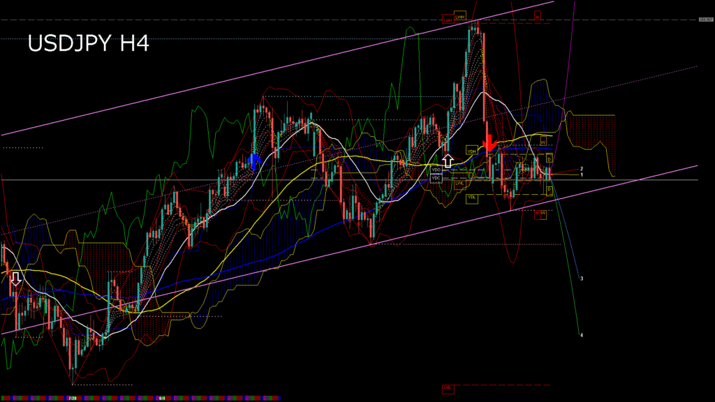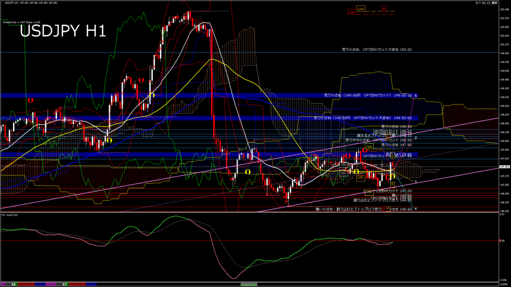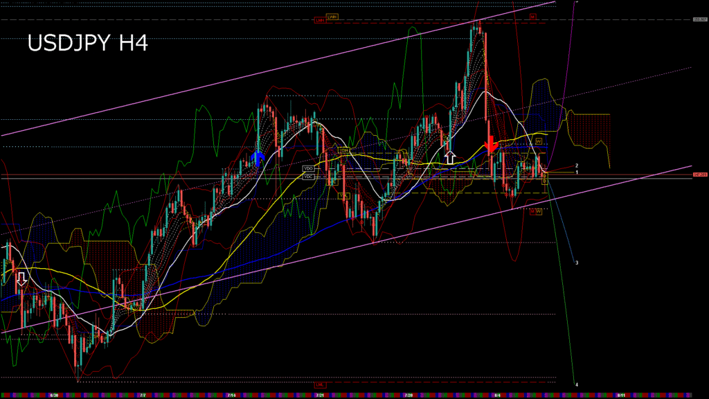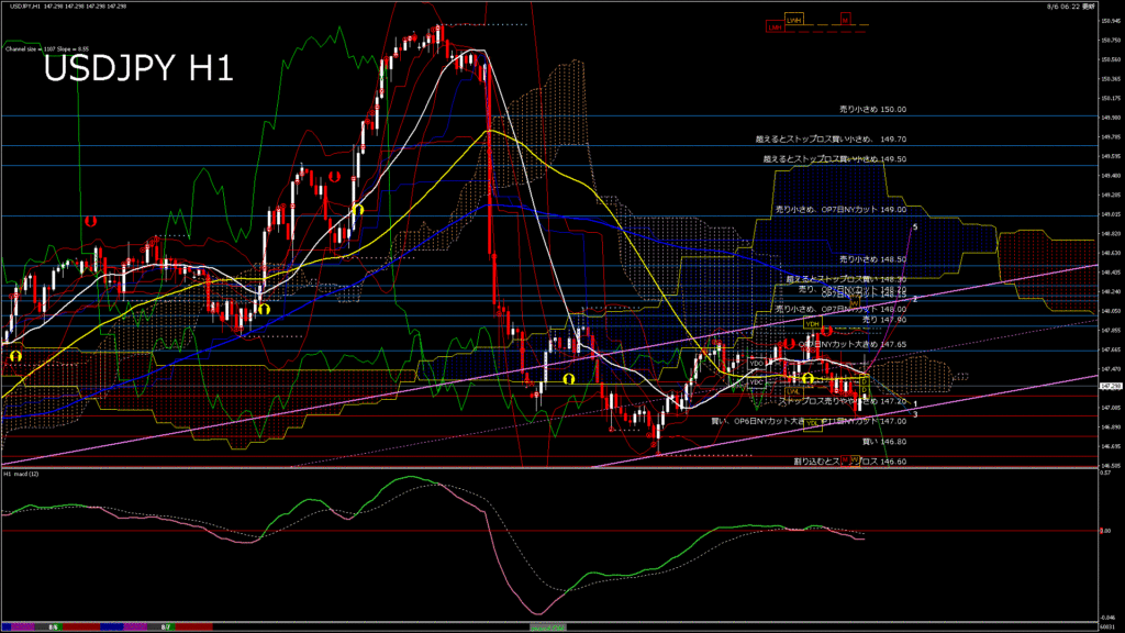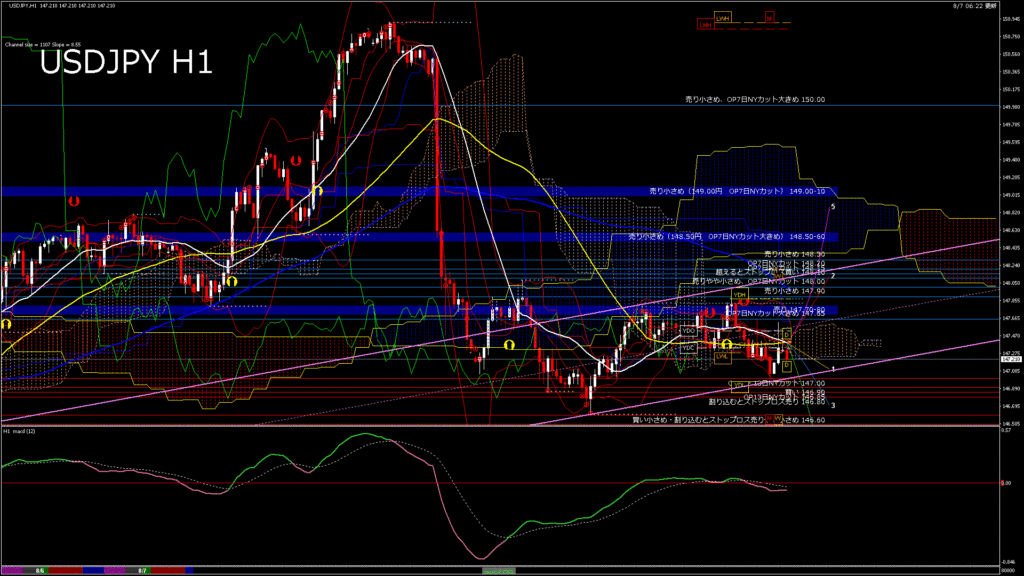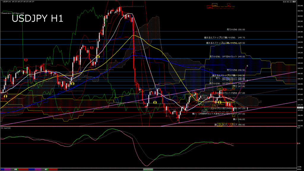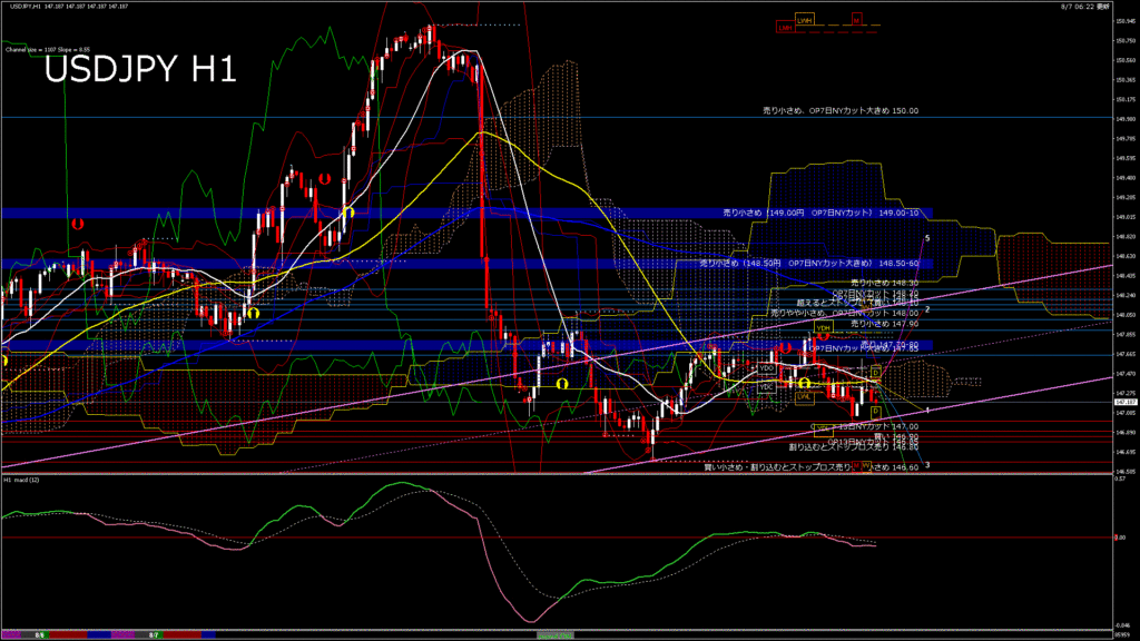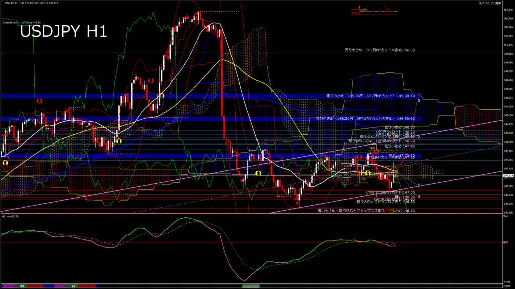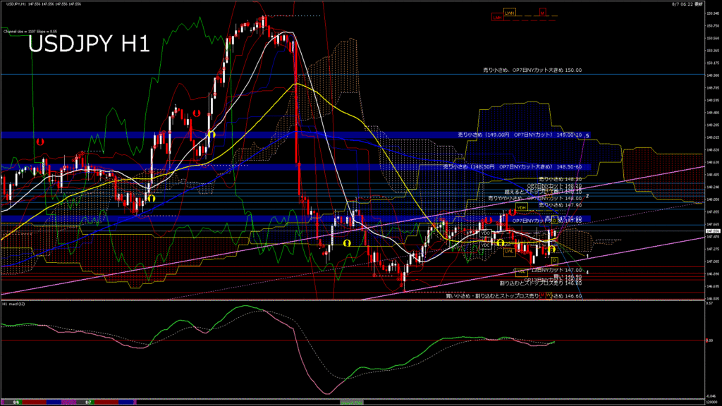 情報 USDJPY-H4移動平均線と現在値(RSI)-2025.8.7 14:00:04