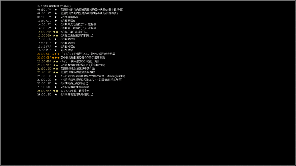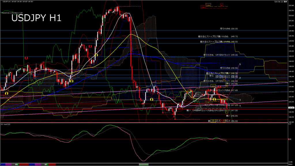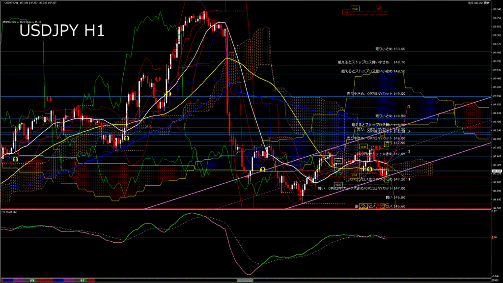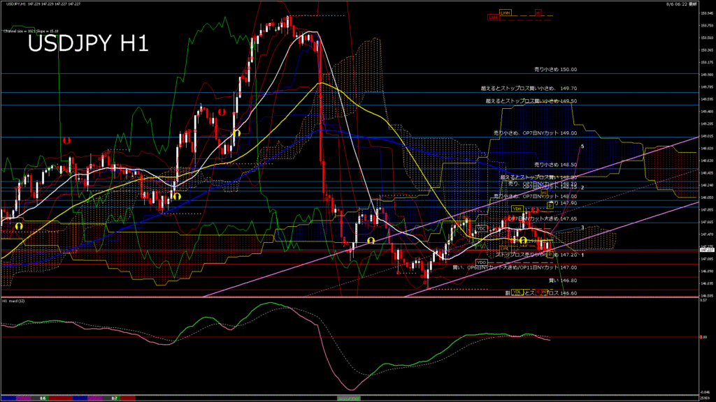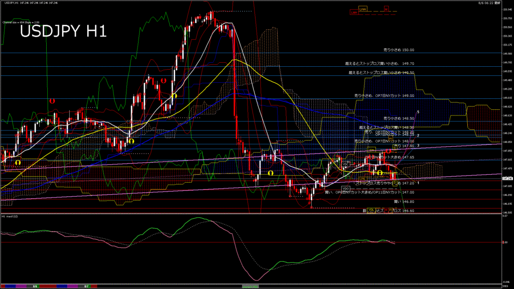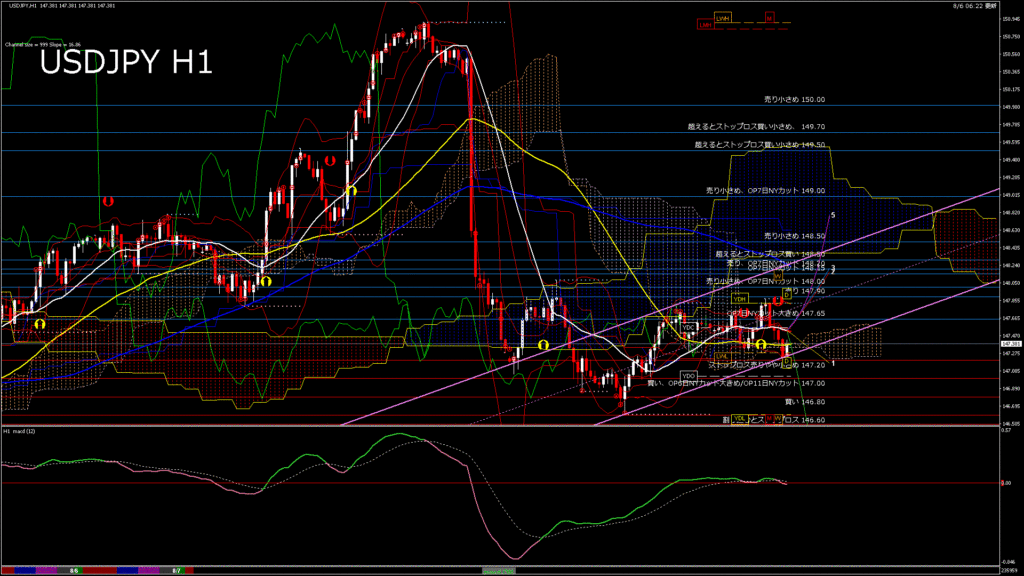 情報 USDJPY-本日の経済指標と日足移動平均線(RSI)-2025.8.7 6:00:35