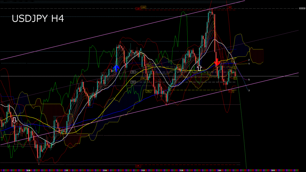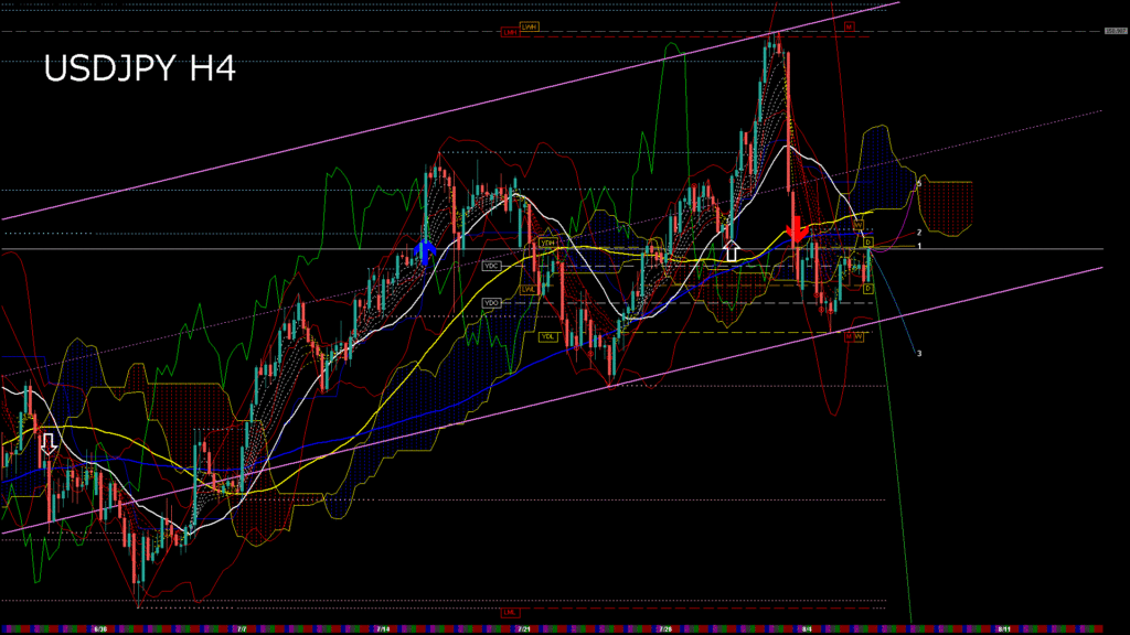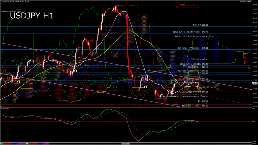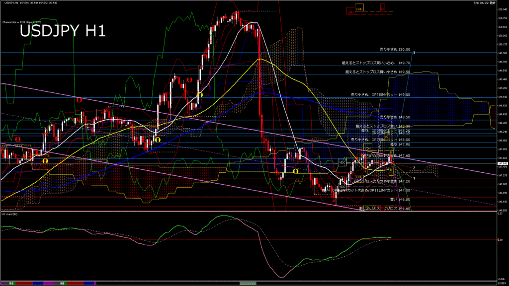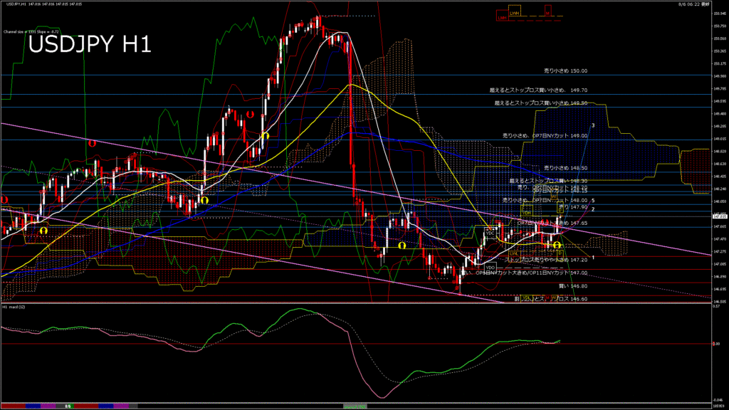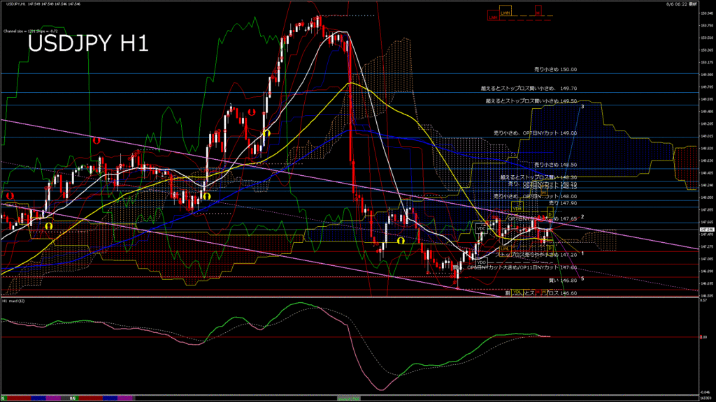 情報 USDJPY-H1移動平均線と現在値(RSI)-2025.8.6 21:00:00