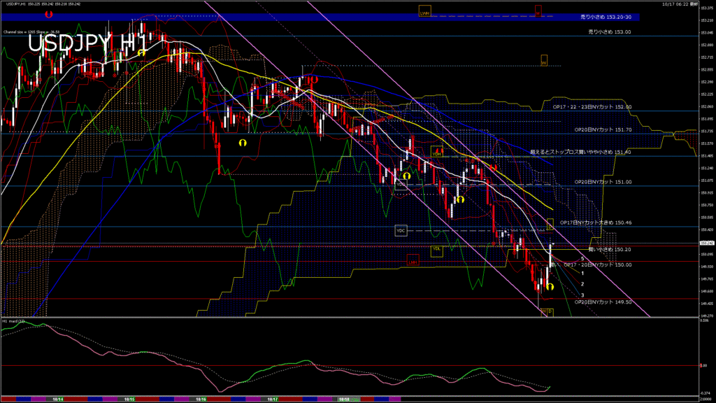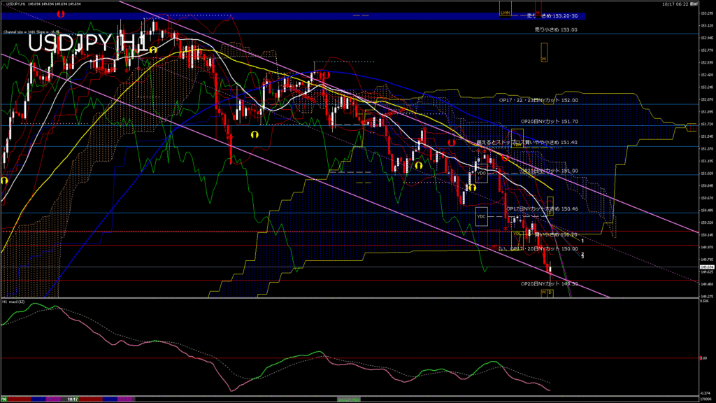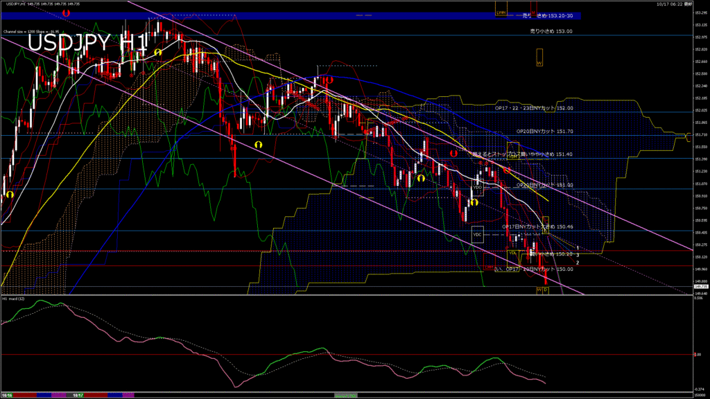 USDJPY-H1移動平均線と現在値(RSI)-2025.10.17 22:00:00