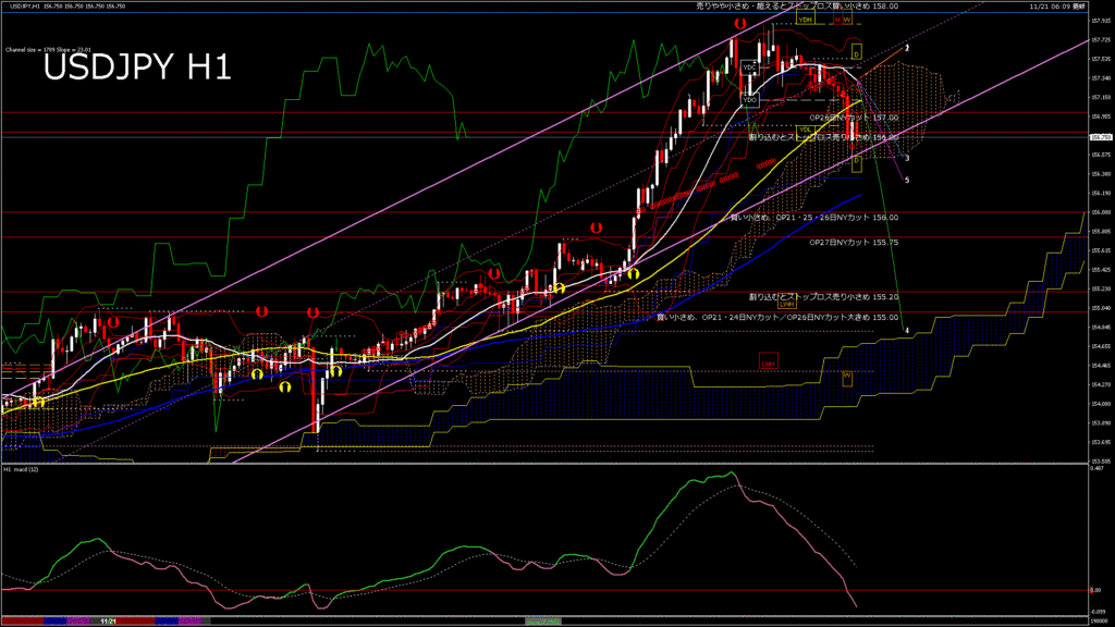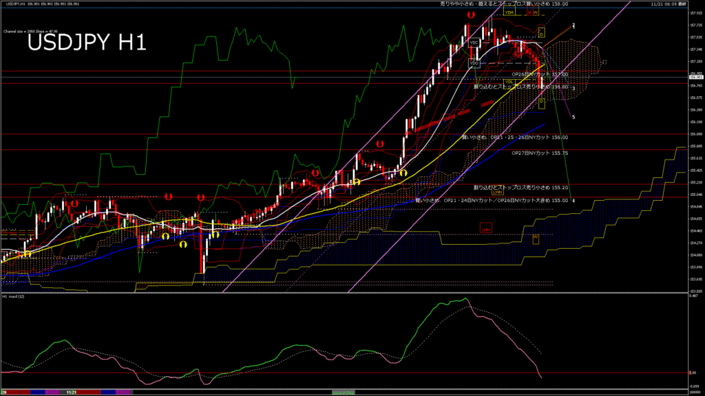 情報 USDJPY-H1移動平均線と現在値(RSI)-2025.11.21 22:00:00