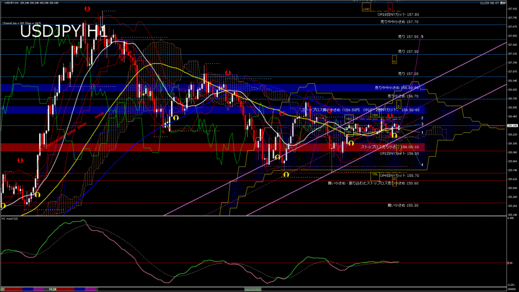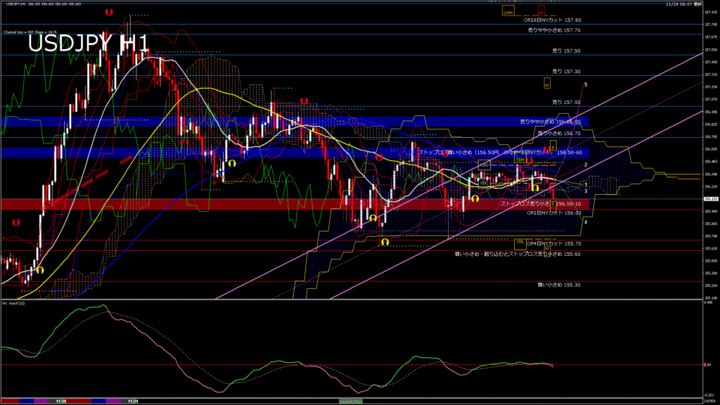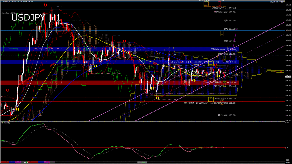 情報 USDJPY-H1移動平均線と現在値(RSI)-2025.11.28 23:00:00