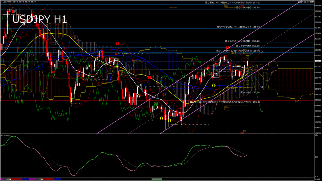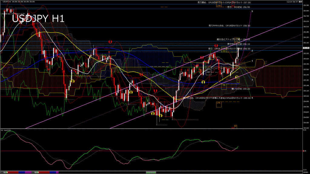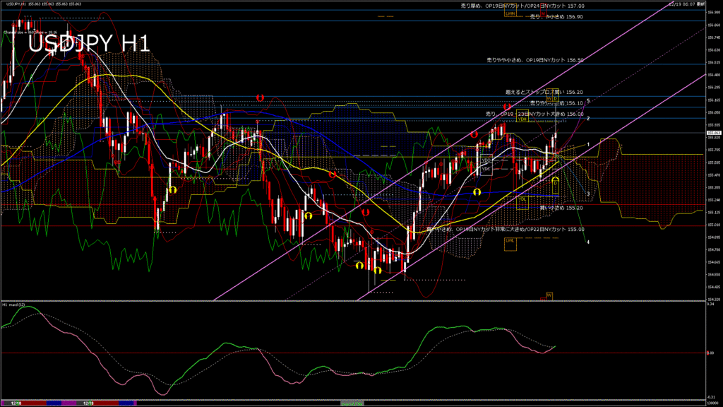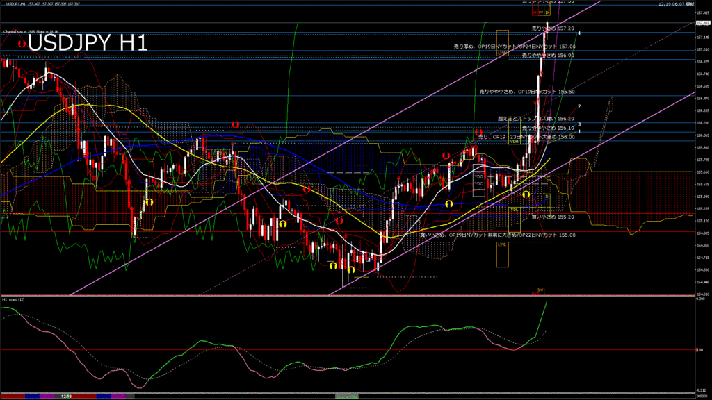 情報 USDJPY-H1移動平均線と現在値(RSI)-2025.12.19 20:00:00
