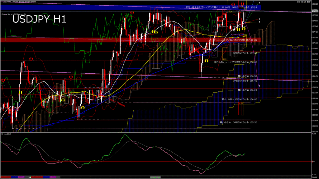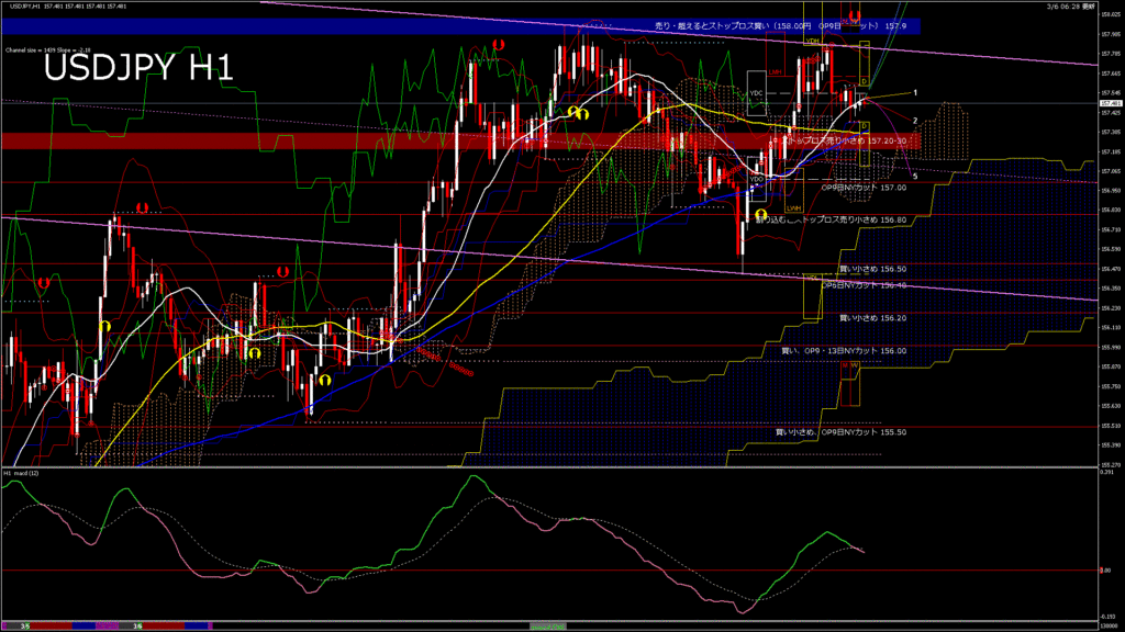 情報 USDJPY-H1移動平均線と現在値(RSI)-2026.3.6 20:00:00