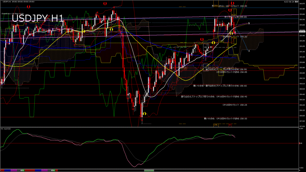 情報 USDJPY-H4移動平均線と現在値(RSI)-2026.4.14 2:00:00
