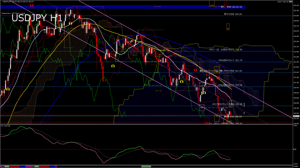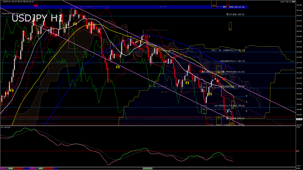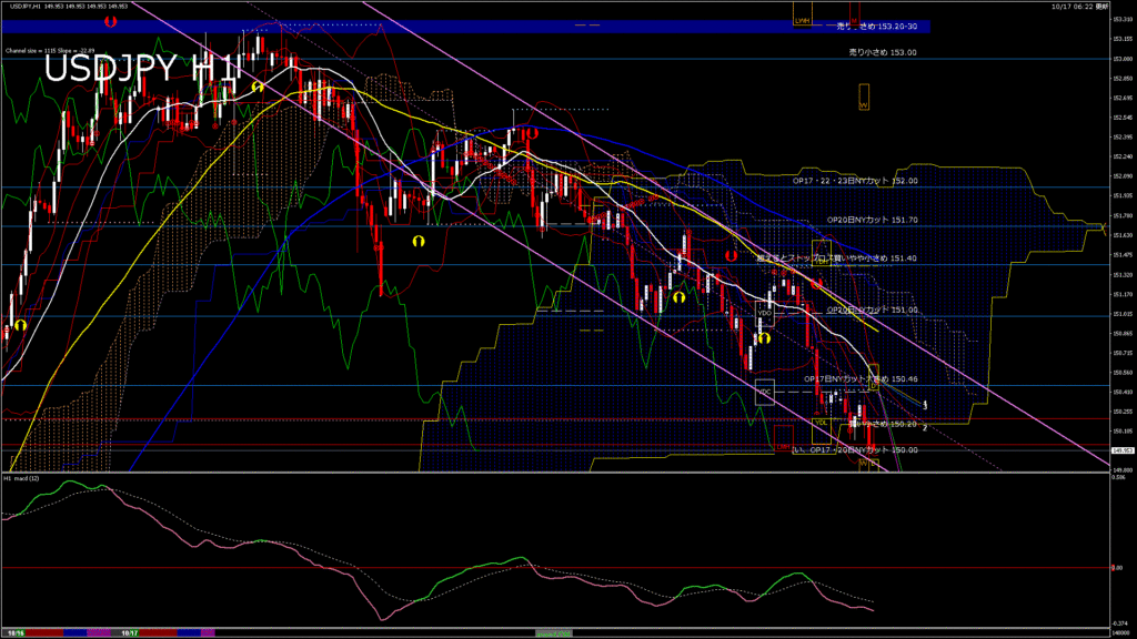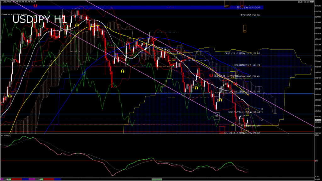 USDJPY-H1移動平均線と現在値(RSI)-2025.10.17 15:00:00