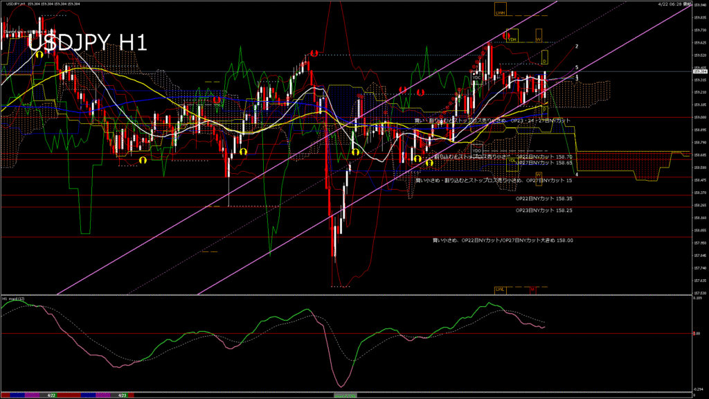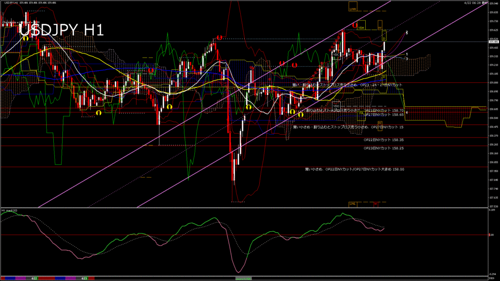 情報 USDJPY-H1移動平均線と現在値(RSI)-2026.4.23 3:00:00