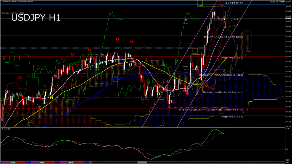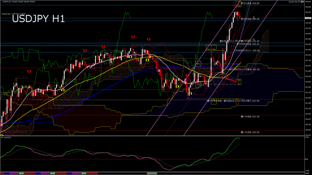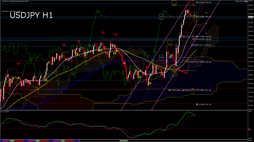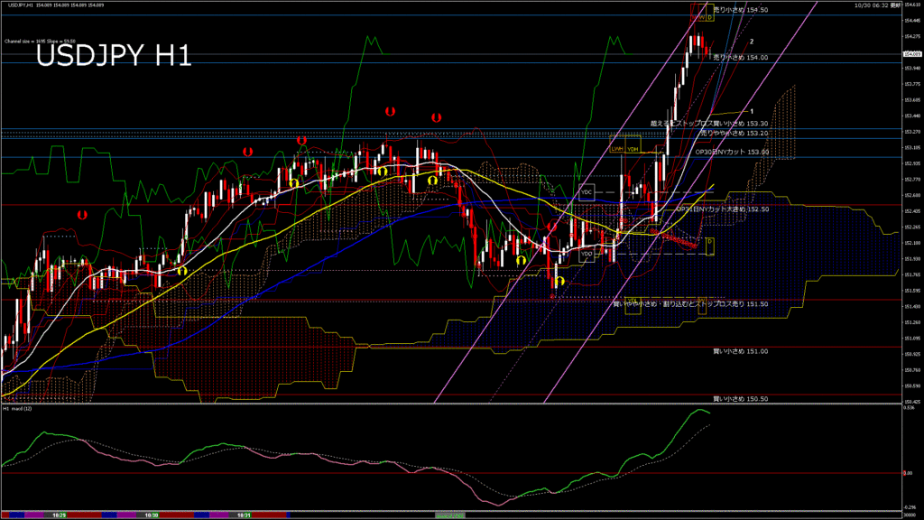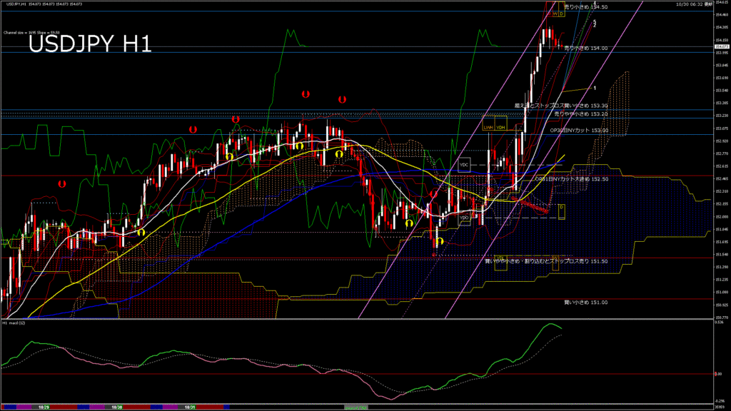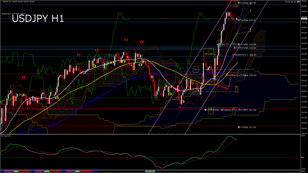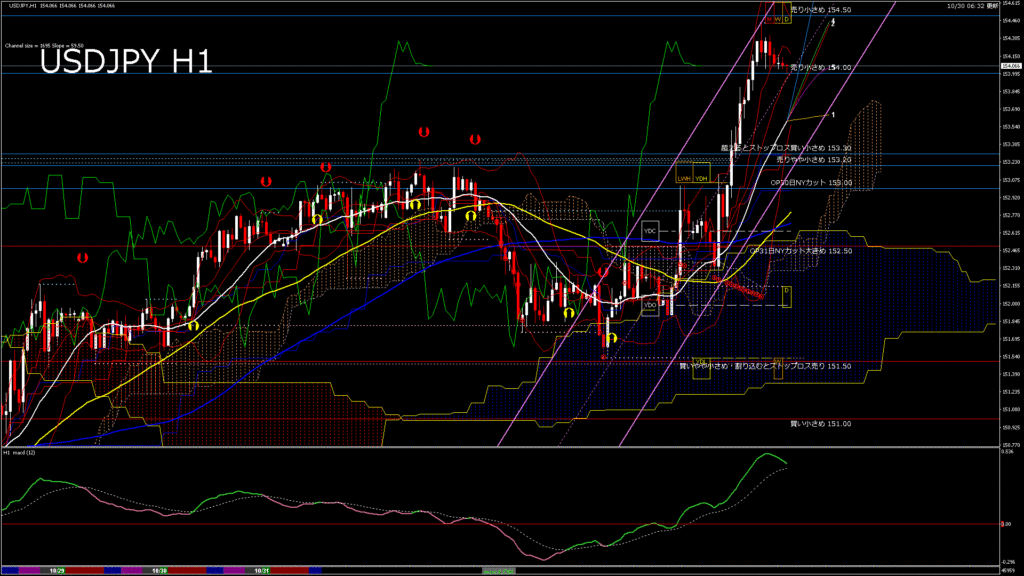 情報 USDJPY-H1移動平均線と現在値(RSI)-2025.10.31 8:00:00