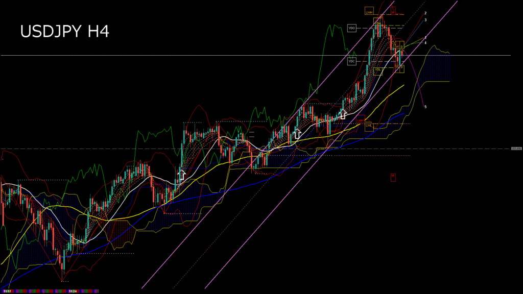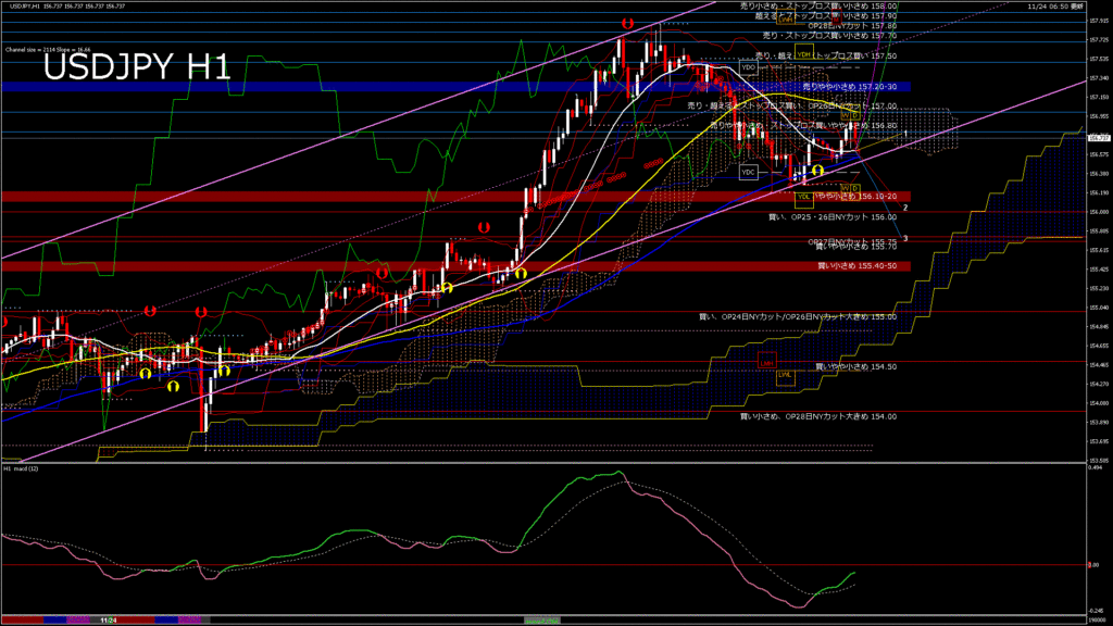 情報 USDJPY-H1移動平均線と現在値(RSI)-2025.11.24 19:00:00