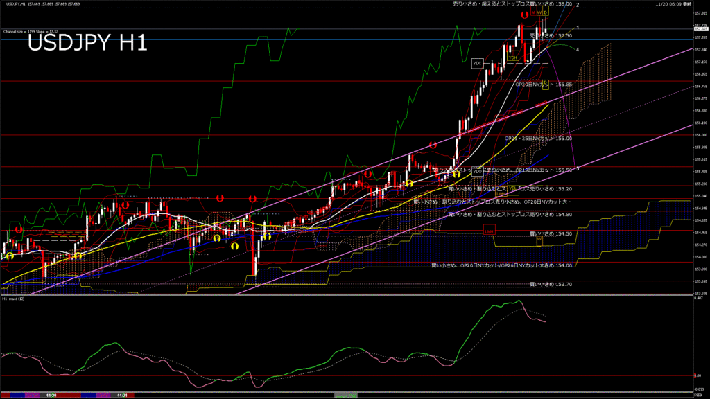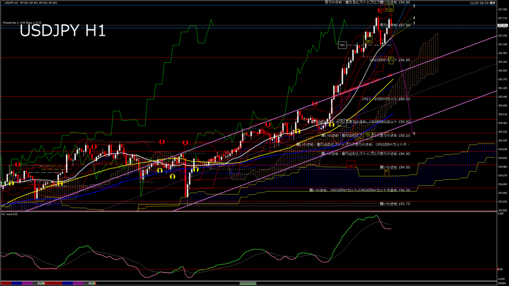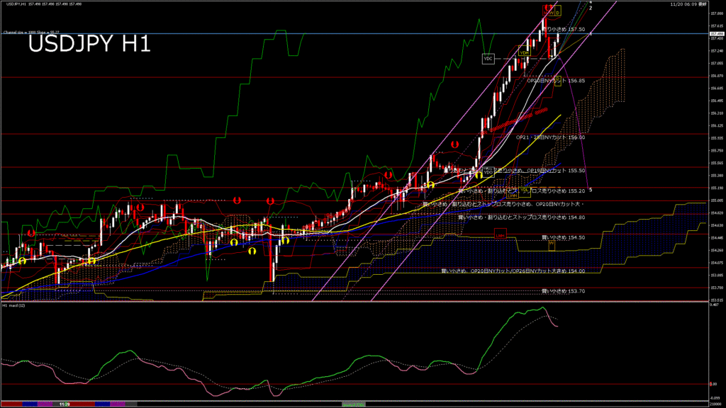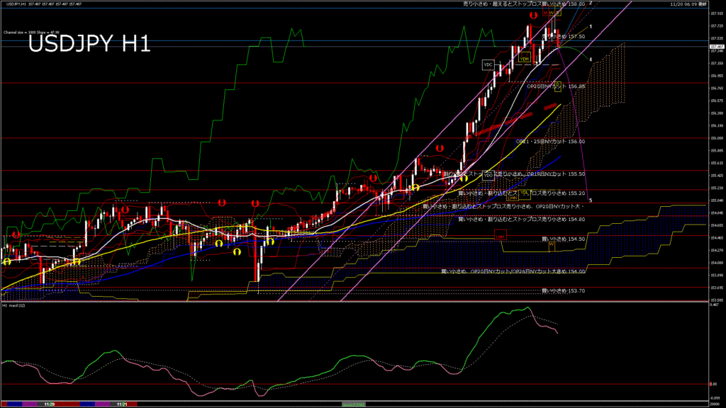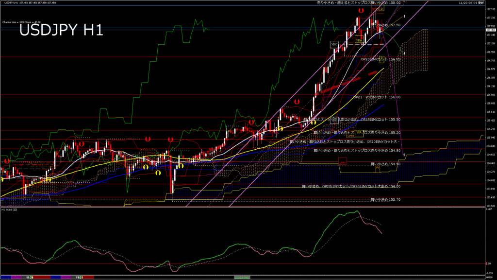 情報 USDJPY-H1移動平均線と現在値(RSI)-2025.11.21 4:00:00