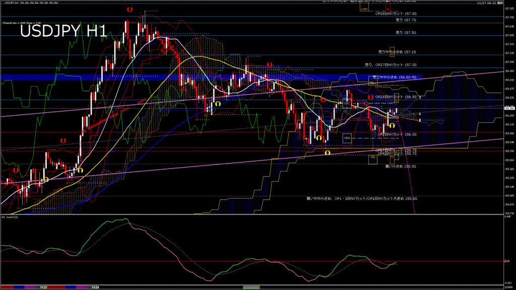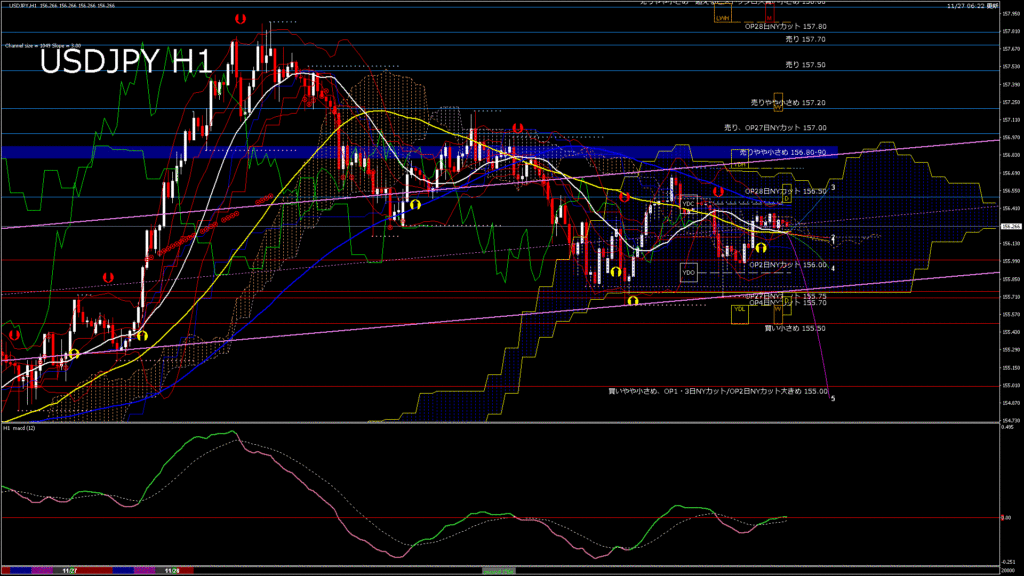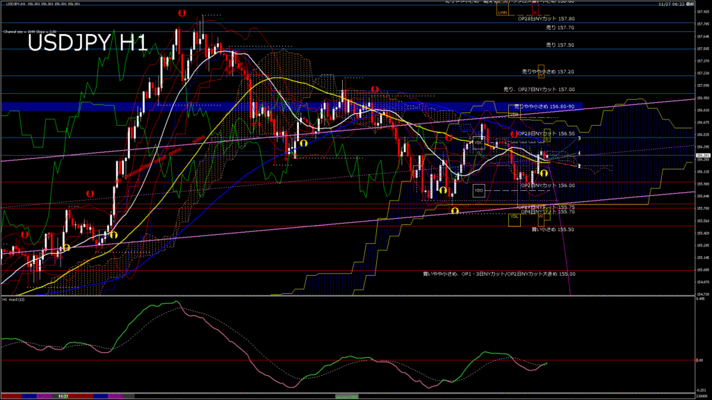情報 USDJPY-H1移動平均線と現在値(RSI)-2025.11.28 5:00:00