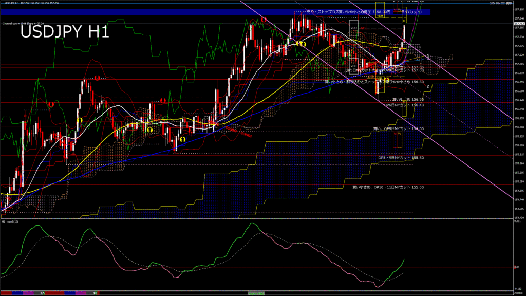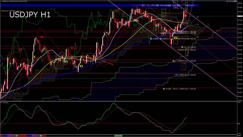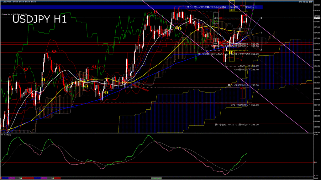 情報 USDJPY-H1移動平均線と現在値(RSI)-2026.3.6 3:00:00