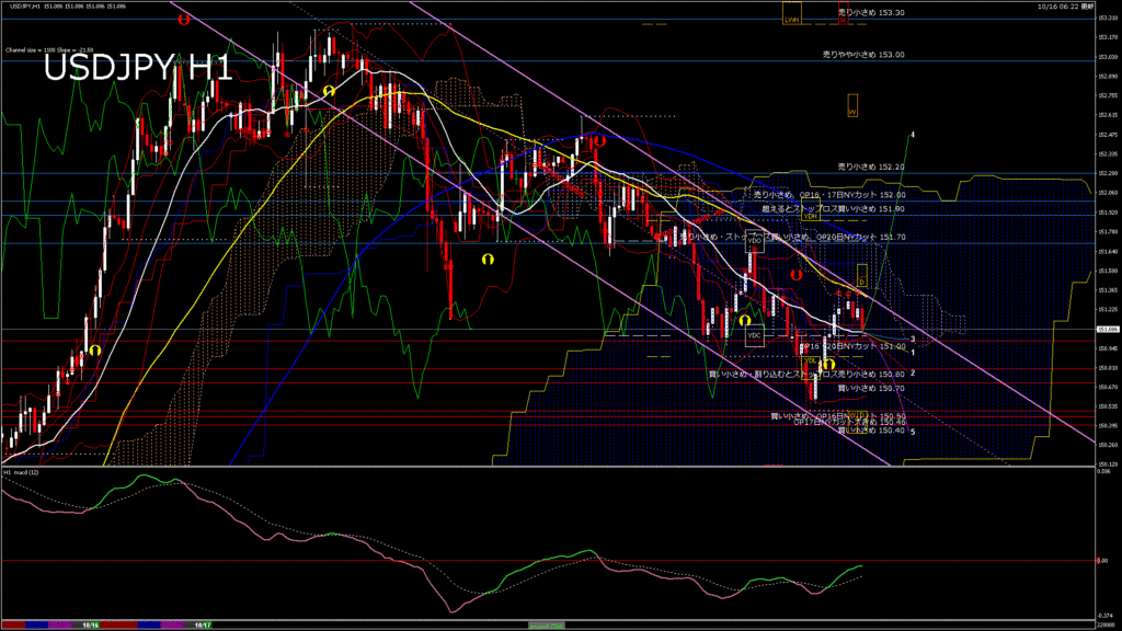 USDJPY-H4移動平均線と現在値(RSI)-2025.10.17 2:00:00