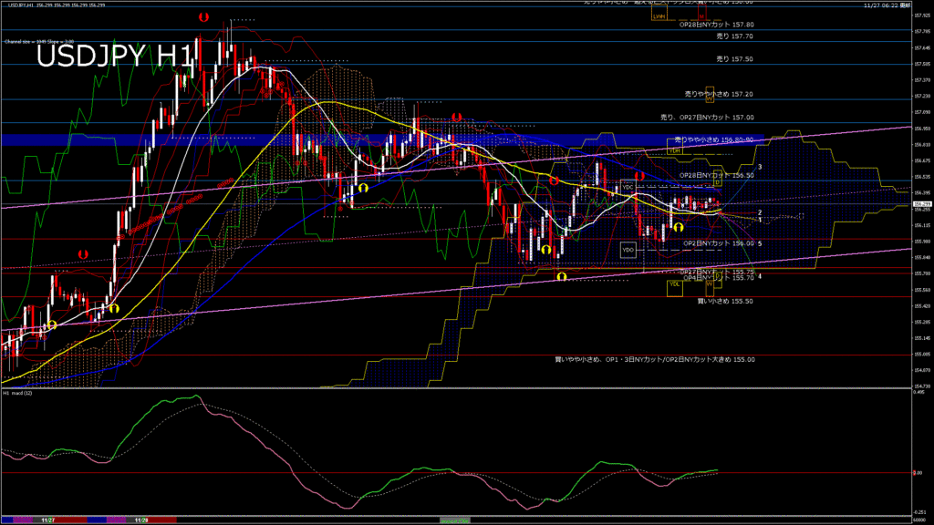 情報 USDJPY-H1移動平均線と現在値(RSI)-2025.11.28 9:00:00