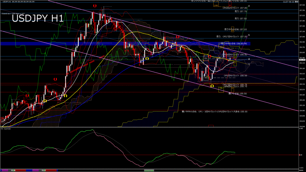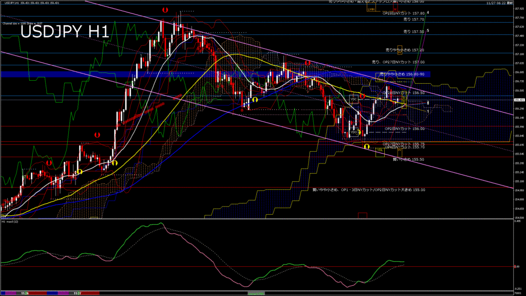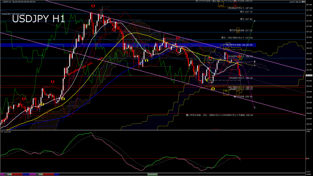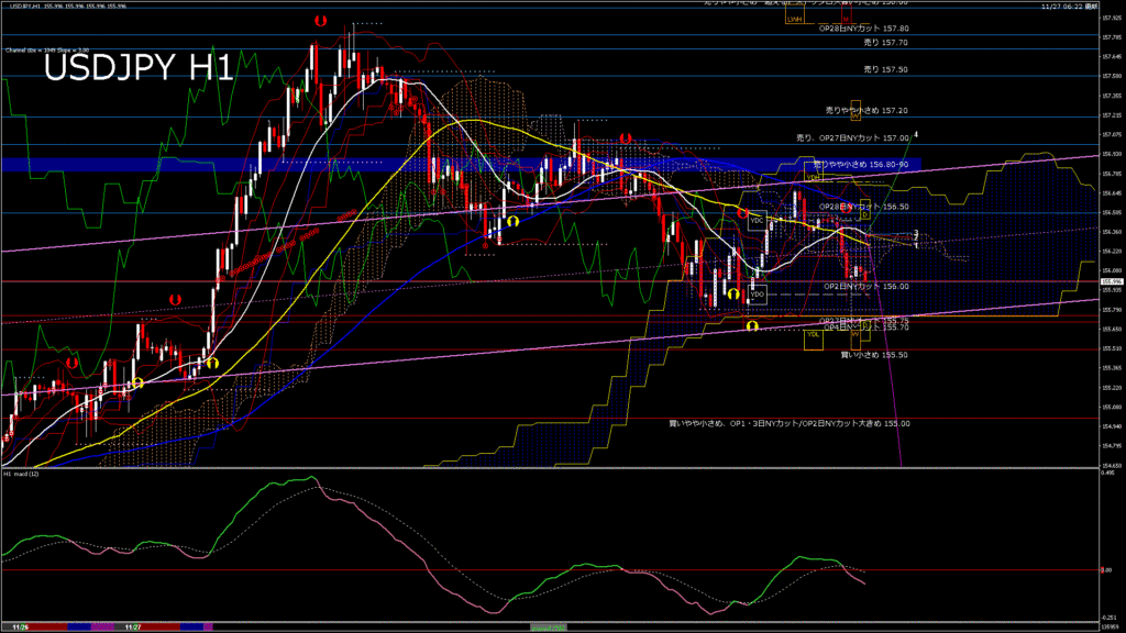 情報 USDJPY-H1移動平均線と現在値(RSI)-2025.11.27 14:00:00