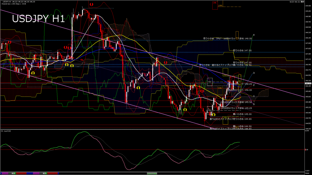 情報 USDJPY-H1移動平均線と現在値(RSI)-2025.2.15 4:00:00