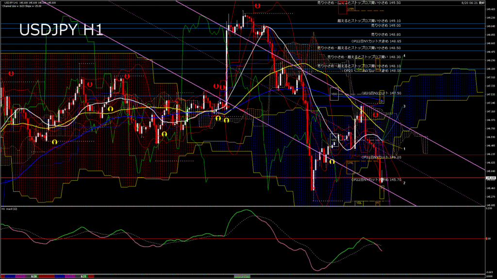 情報 USDJPY-H1移動平均線と現在値(RSI)-2025.2.13 21:00:00