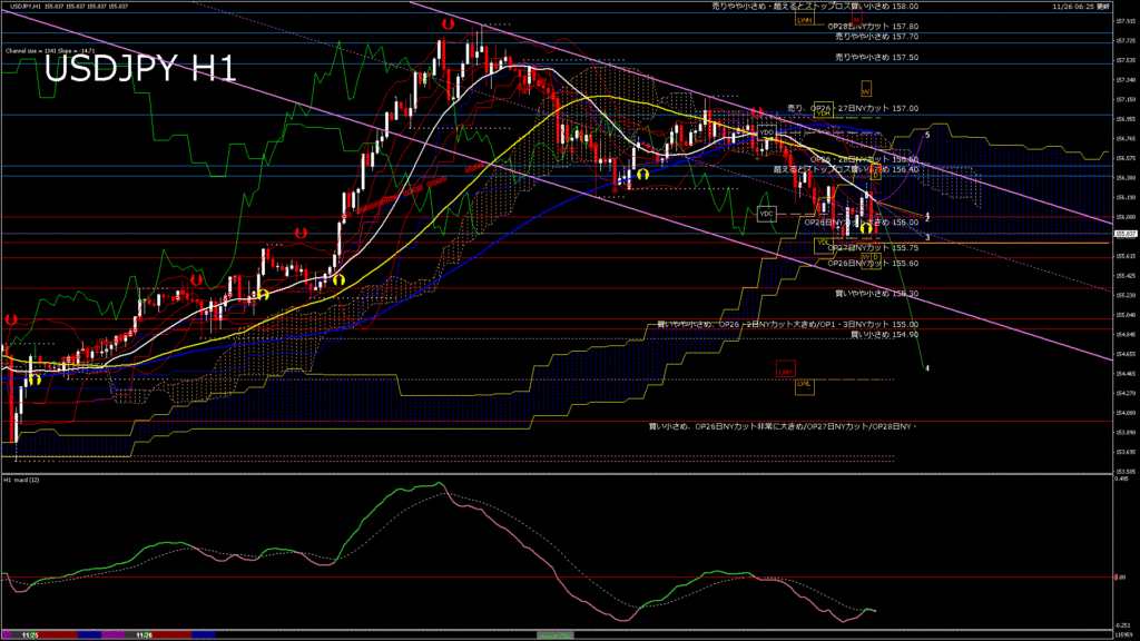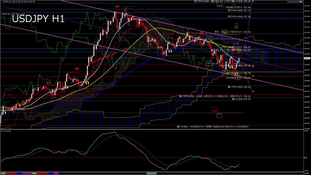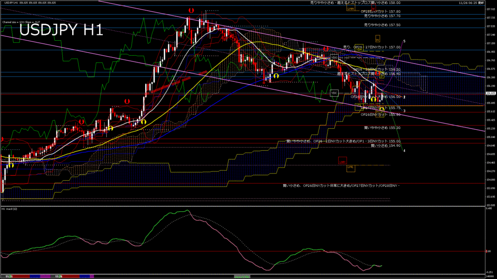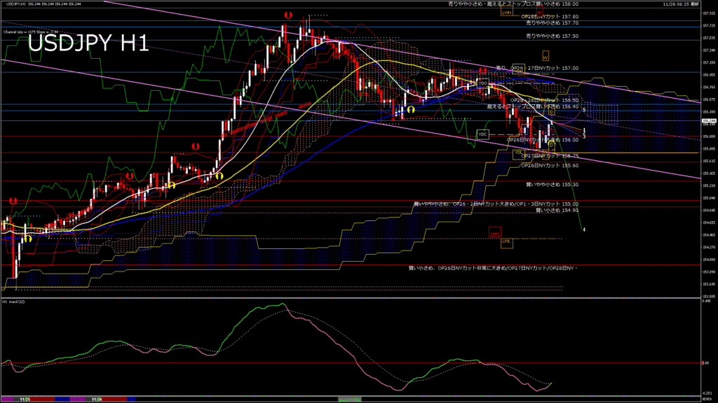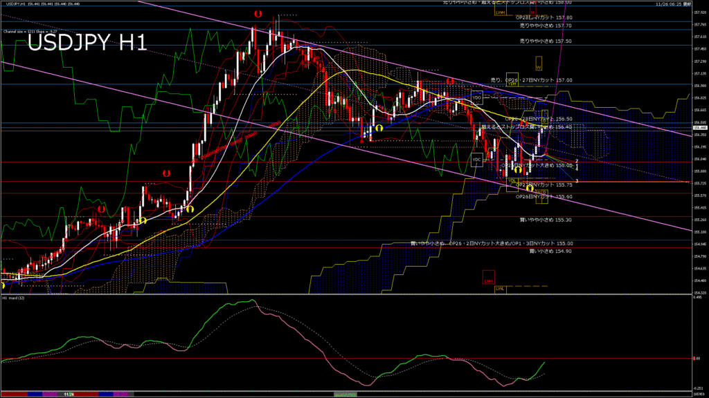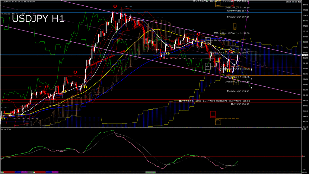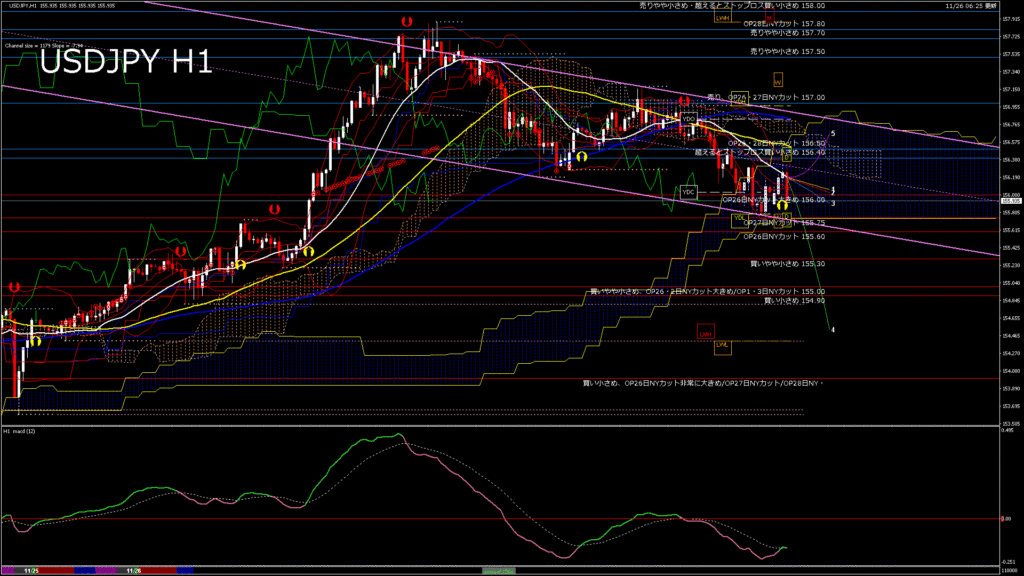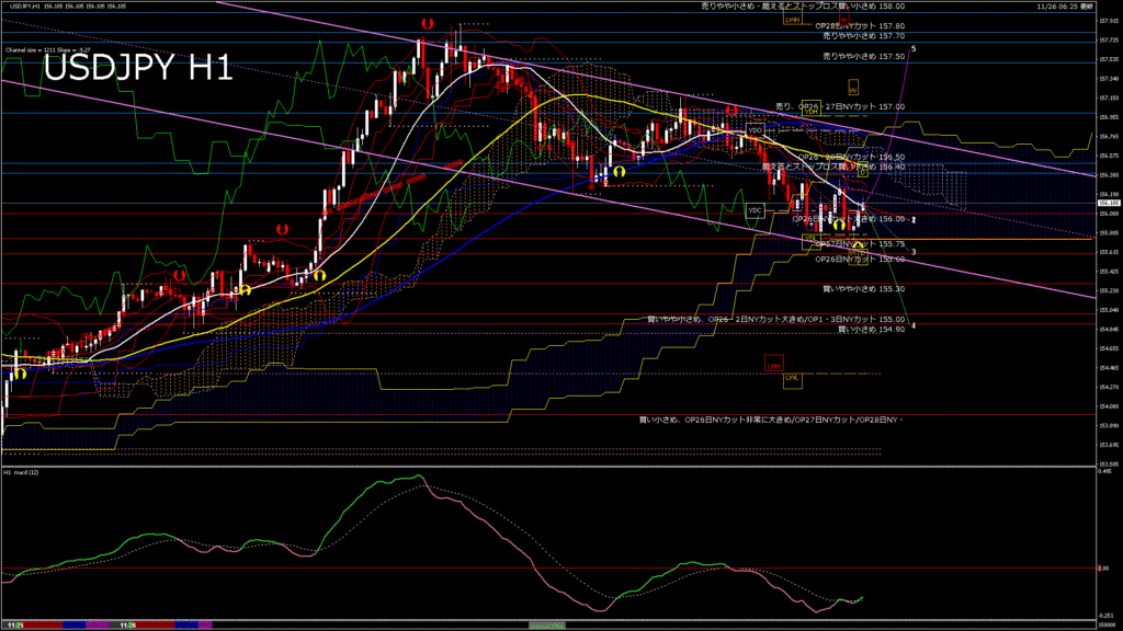 情報 USDJPY-H1移動平均線と現在値(RSI)-2025.11.26 18:00:00