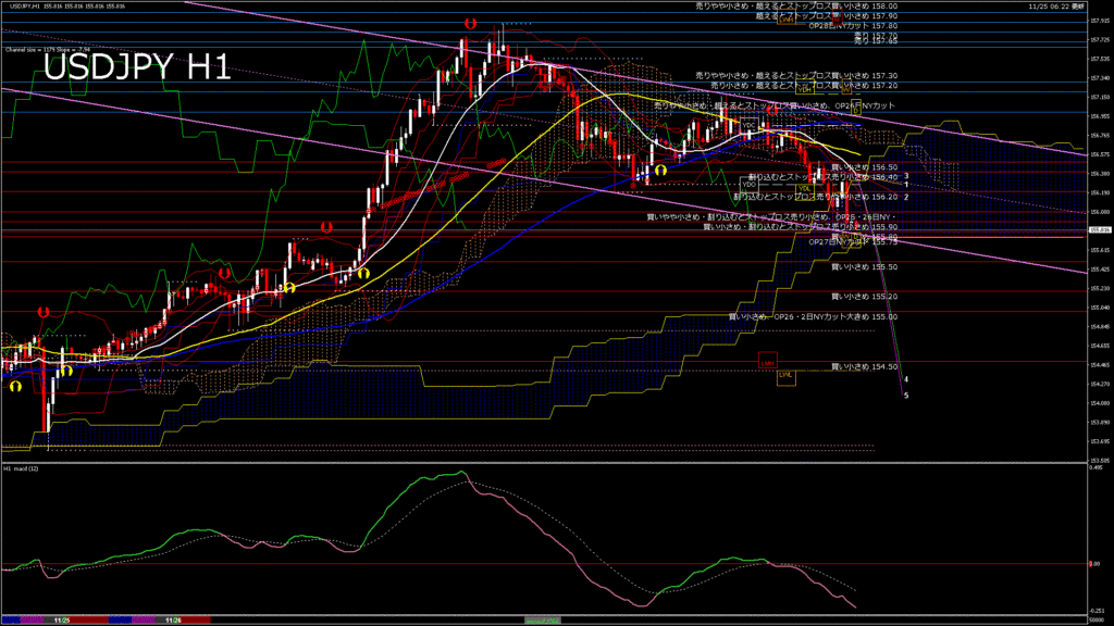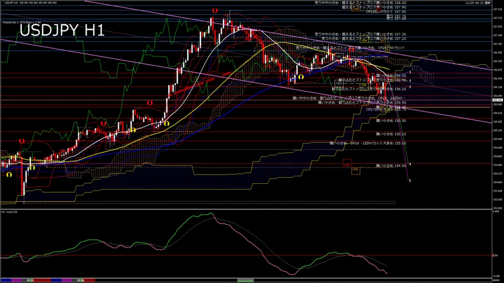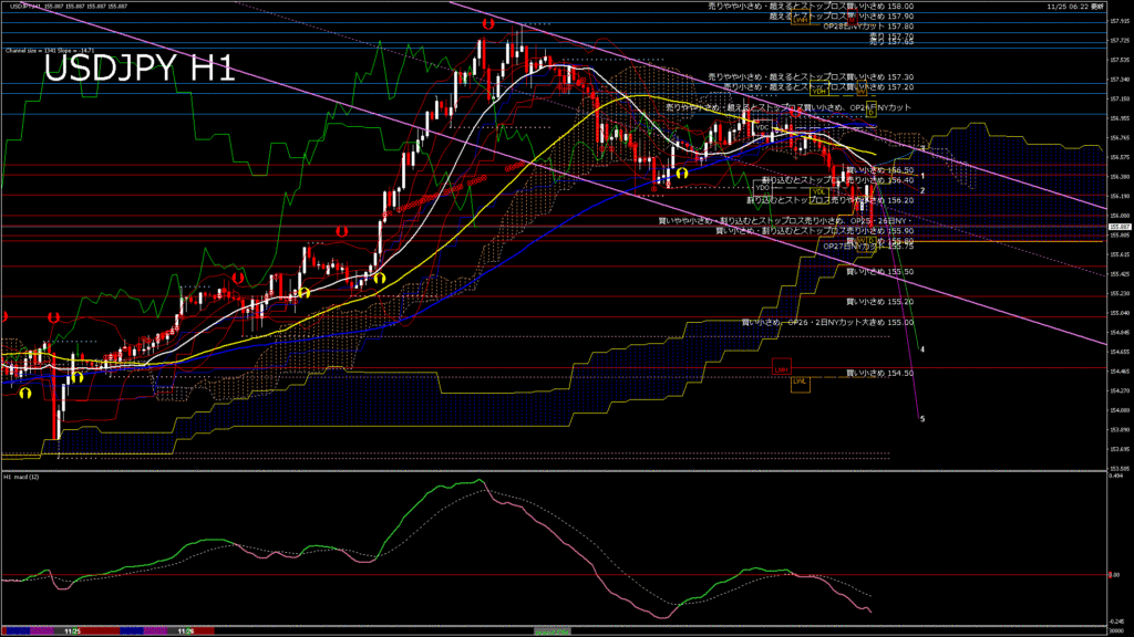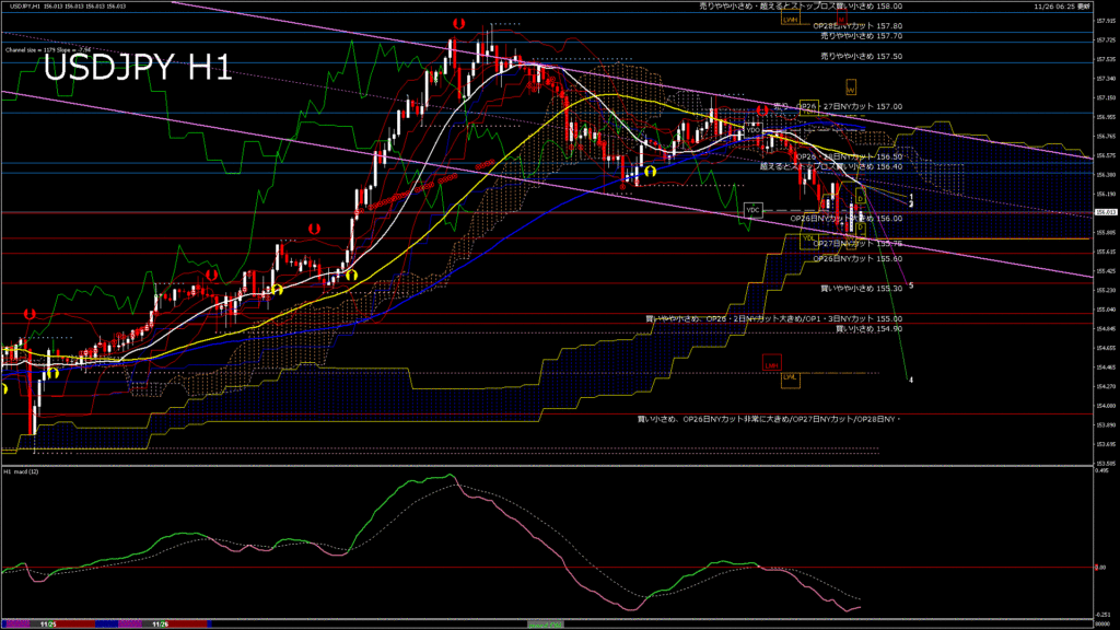 情報 USDJPY-H1移動平均線と現在値(RSI)-2025.11.26 8:00:00