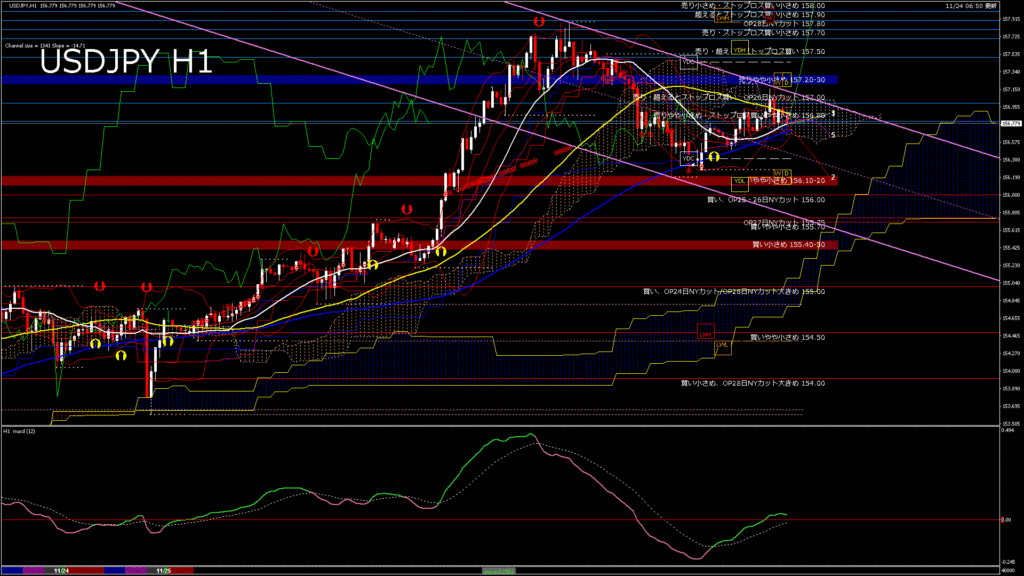 情報 USDJPY-H1移動平均線と現在値(RSI)-2025.11.25 12:00:00
