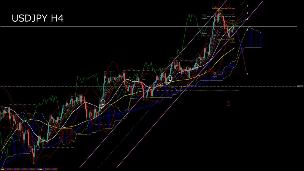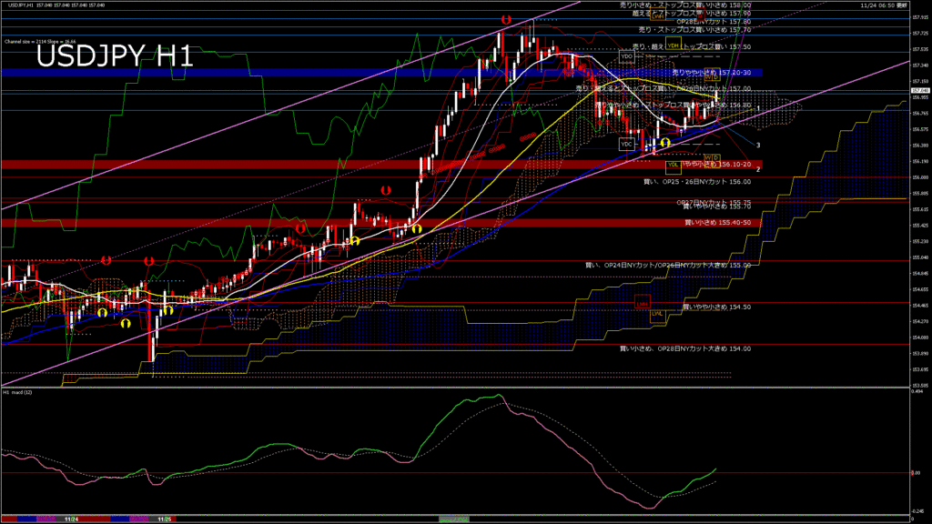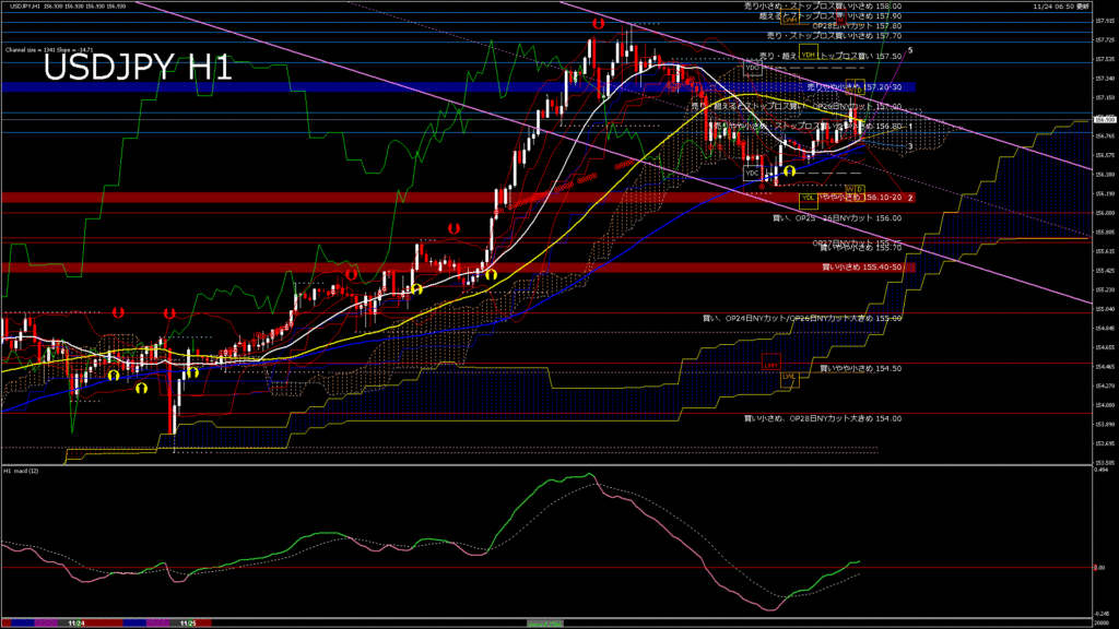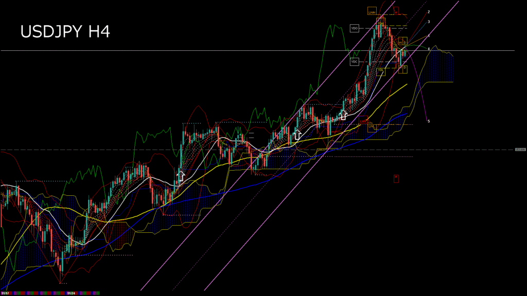 情報 USDJPY-H4移動平均線と現在値(RSI)-2025.11.25 3:00:00