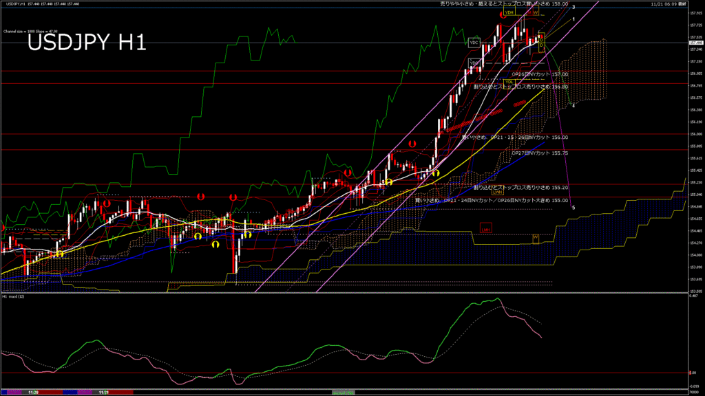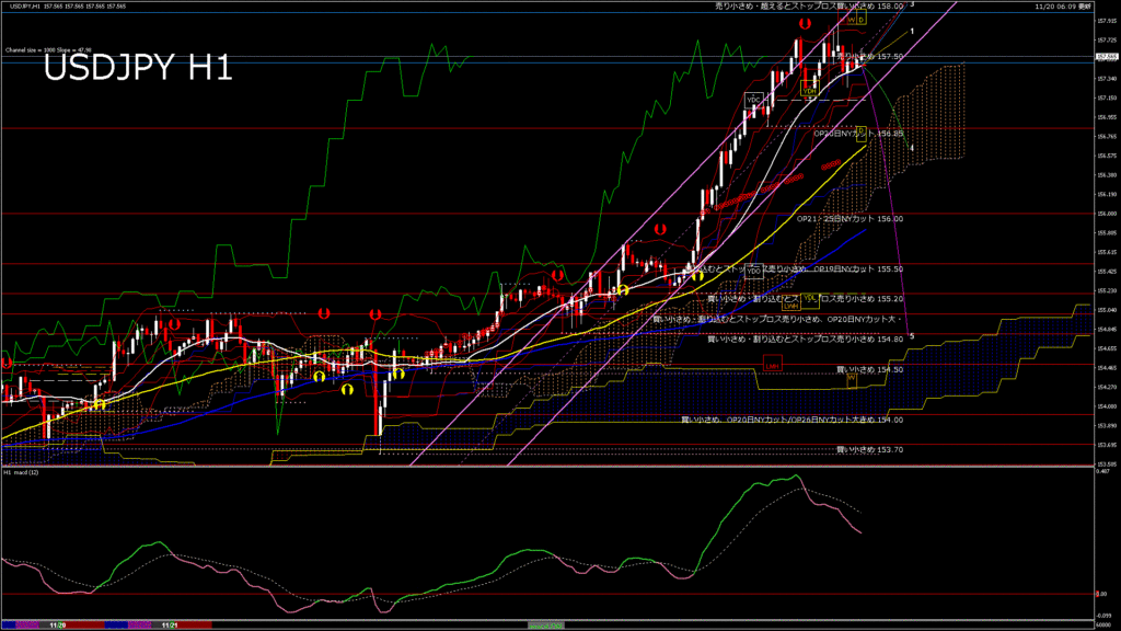 情報 USDJPY-H1移動平均線と現在値(RSI)-2025.11.21 10:00:00